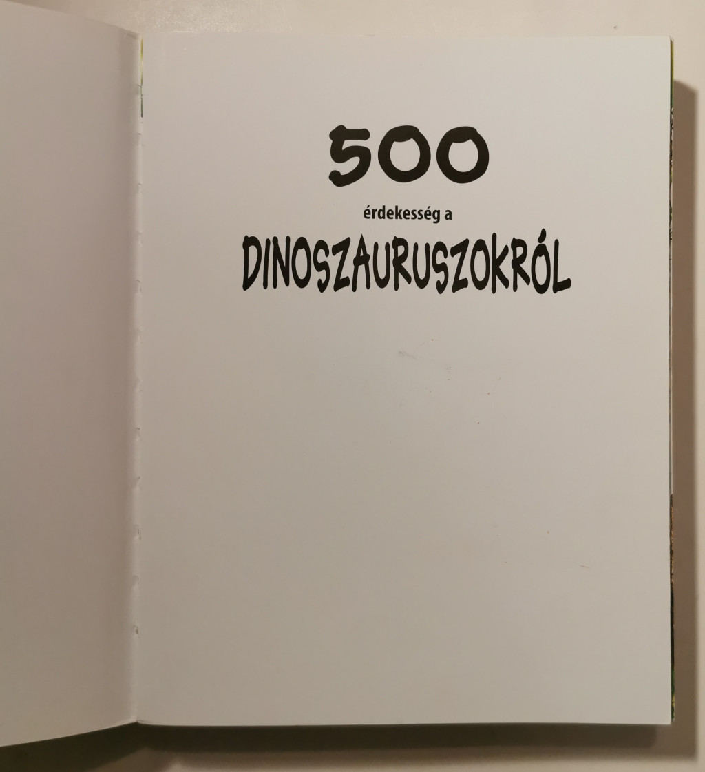 Tudtad, hogy a Brachiosaurus szíve nagyon erős volt? Vagy hogy a Tyrannosaurus Rex lábnyoma olyan, mint egy gigantikus gyíké? Ilyen és sok más, ehhez hasonló kérdésre kapsz választ ebből a könyvből. Ötszáz érdekesség, számtalan izgalmas tény a dinoszauruszok világából.Az 500 érdekesség sorozat fantasztikus időtöltés a gyerekeknek és gyerekekkel, hiszen az érdekességek mentén való tanulás nemcsak hatékony, de nagyon hatékony módja is az ismeretszerzésnek.
