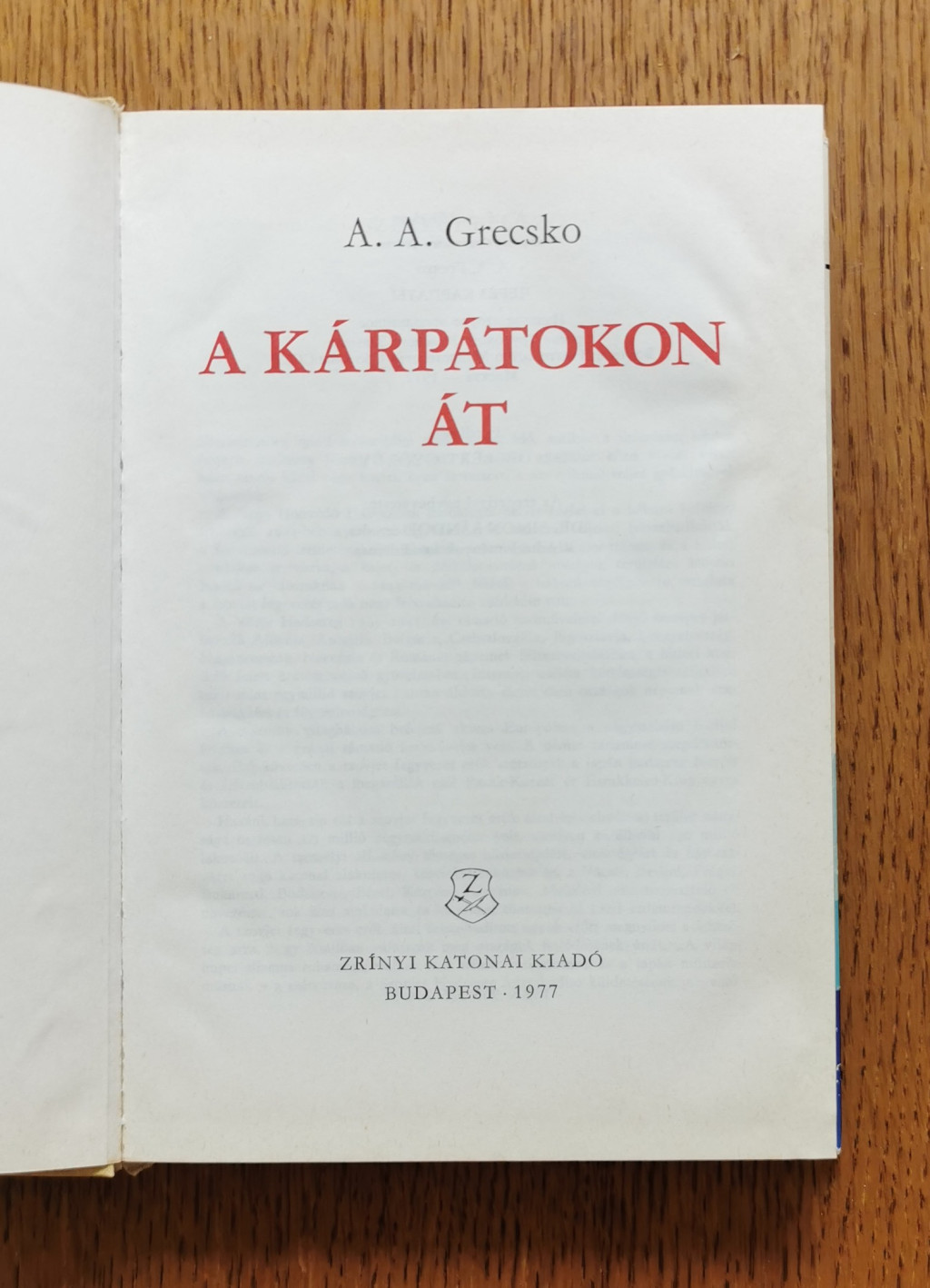 Andrej Grecsko a 4. ukrán front kötelékébe tartozó 1. gárdahadsereg parancsnoka volt a második világháborúban. Visszaemlékezéseiből megismerkedhetünk a Kárpátok térségében; Csehszlovákiában és Lengyelországban vívott harcokkal.