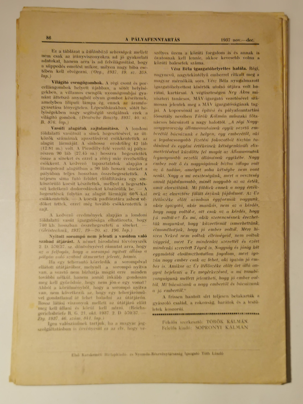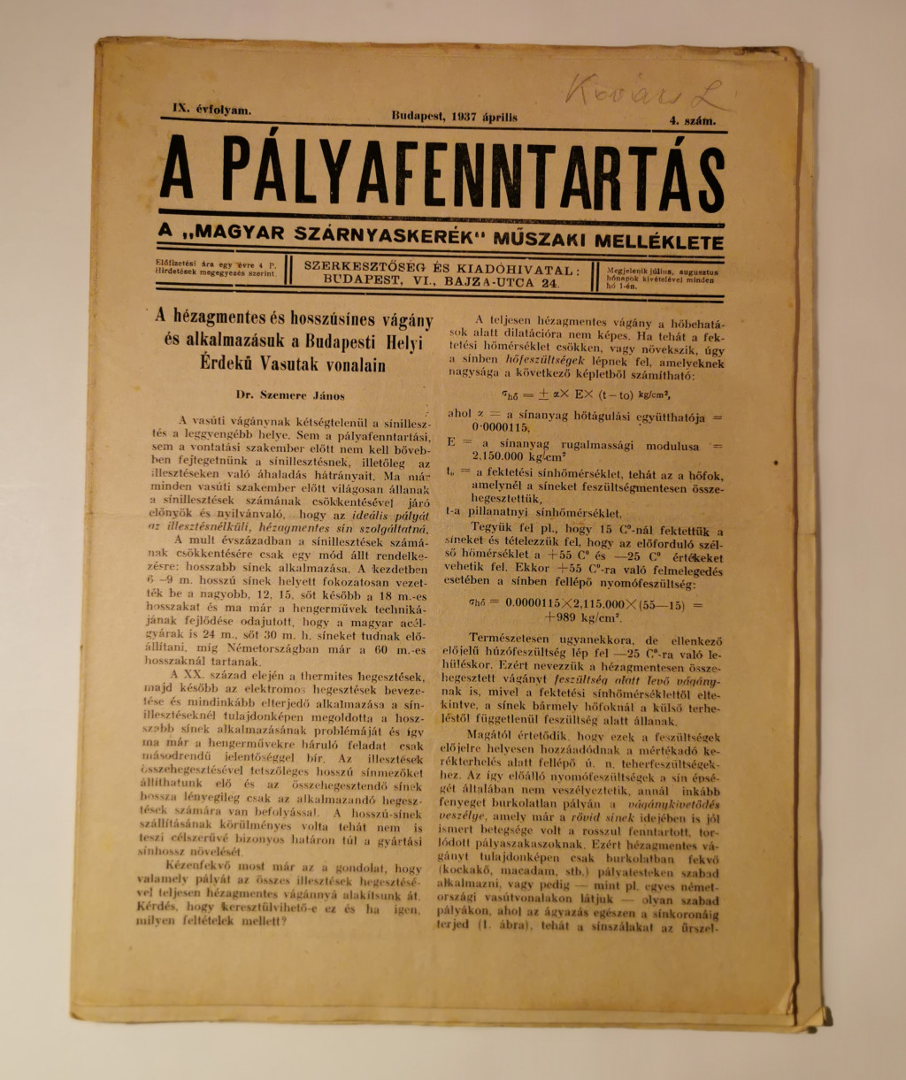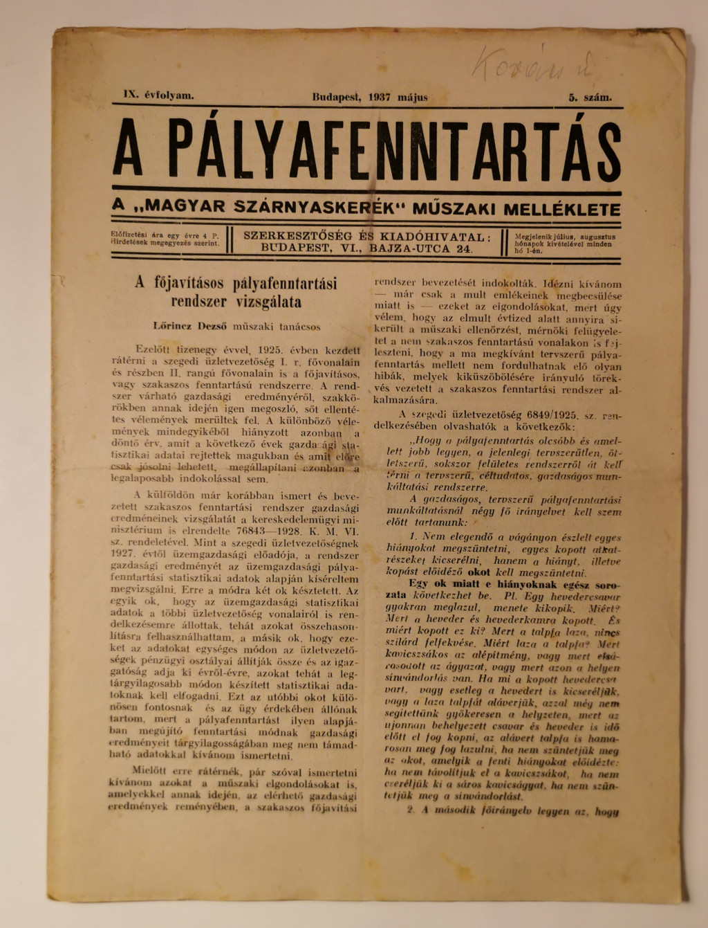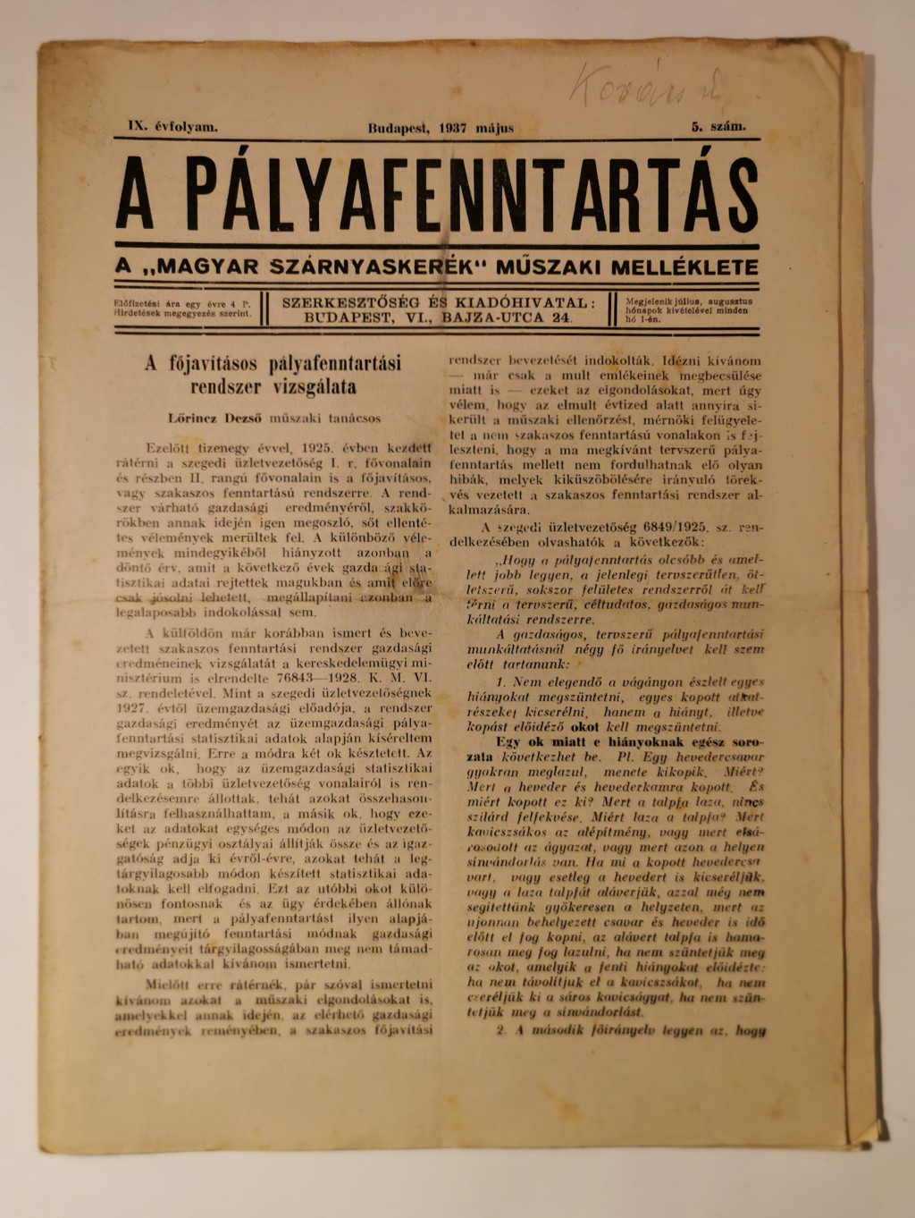 A pályafenntartás - IX. évf. 1937 (3-10. lapszámok)