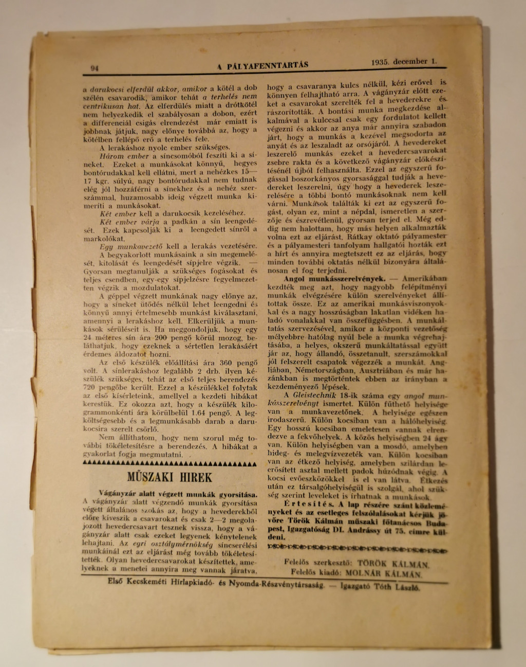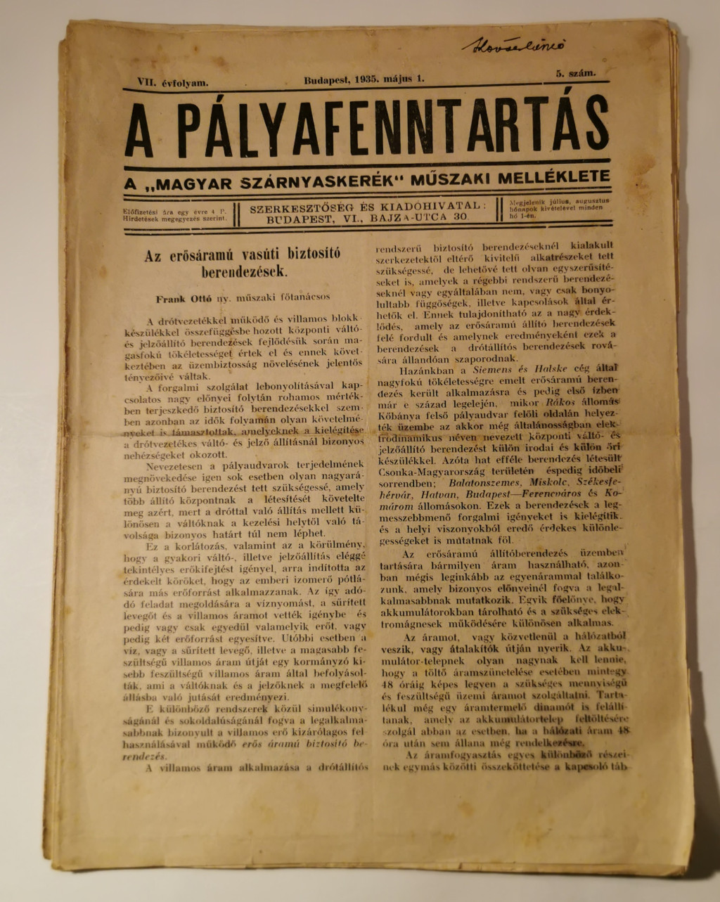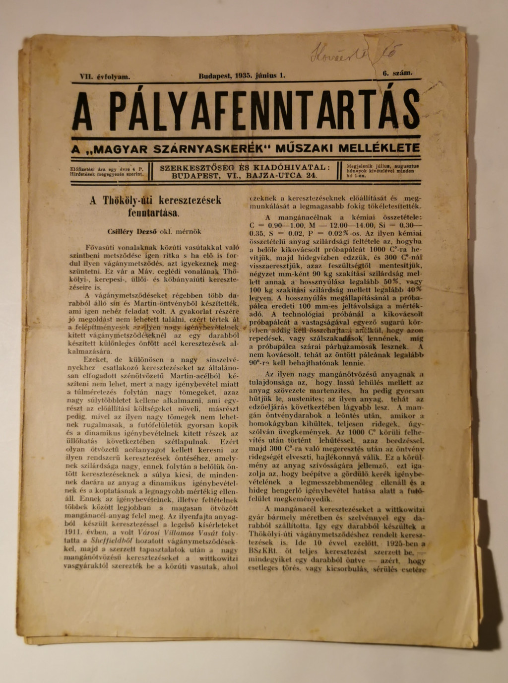 A pályafenntartás - VII. évf. 1935 (5-10. lapszámok)