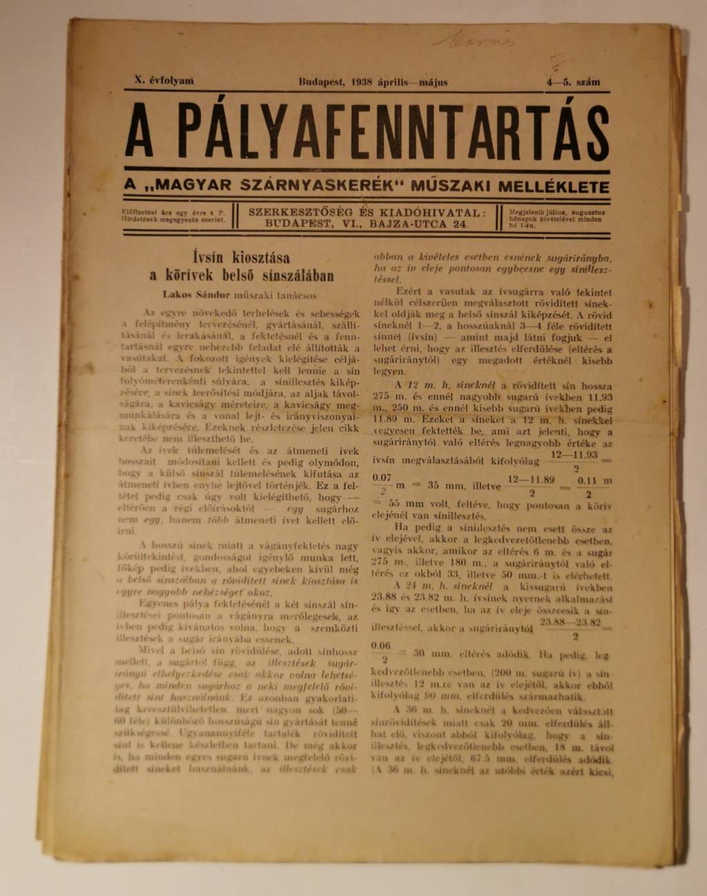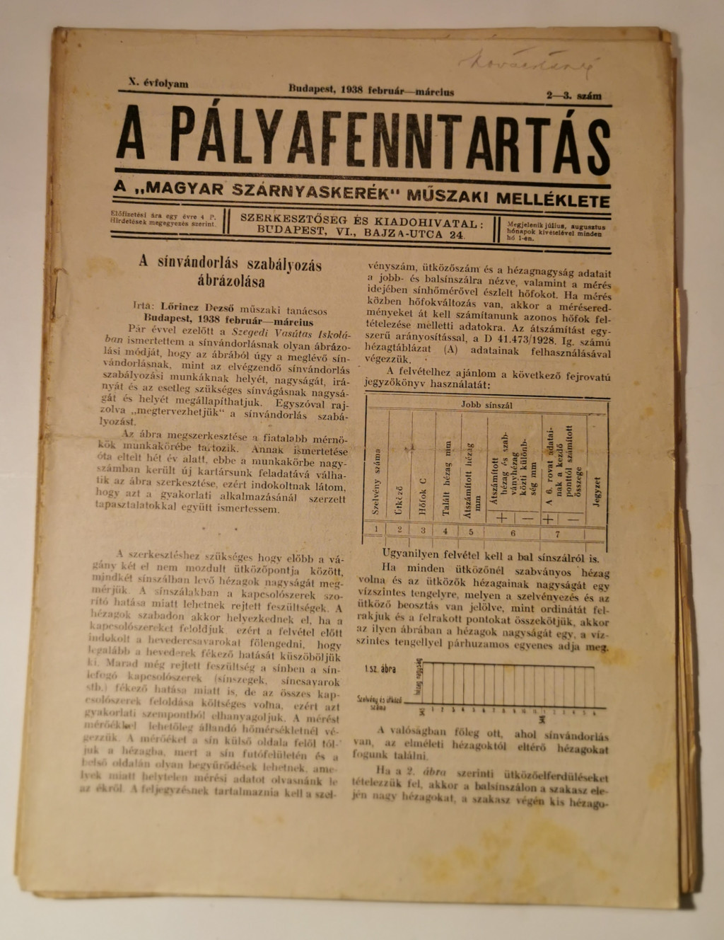 A pályafenntartás - X. évf. 1938 (1-10. lapszámok)