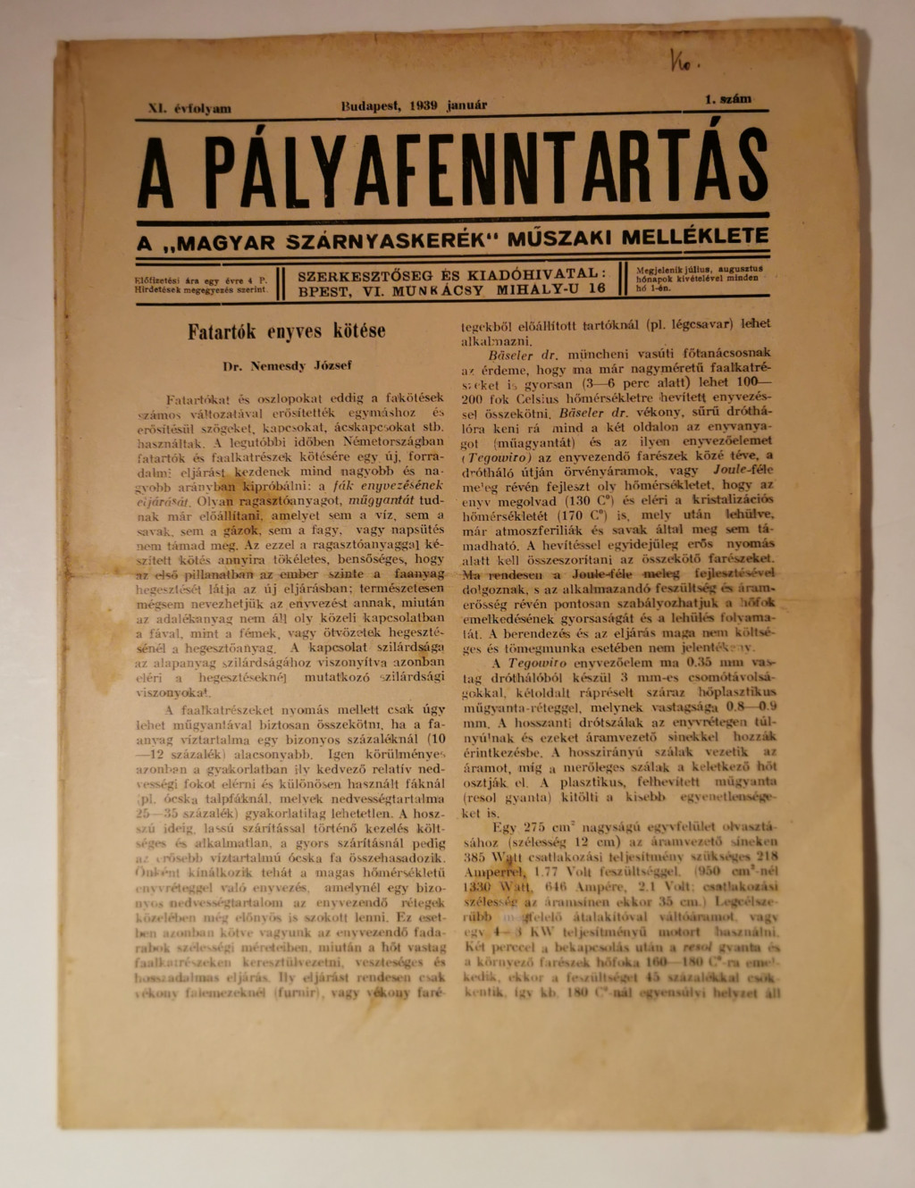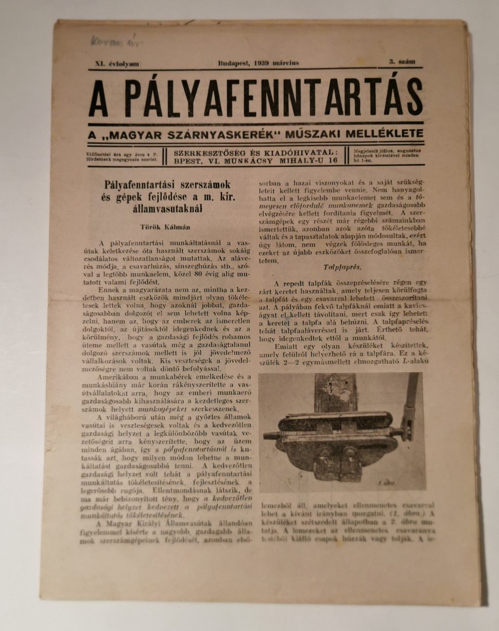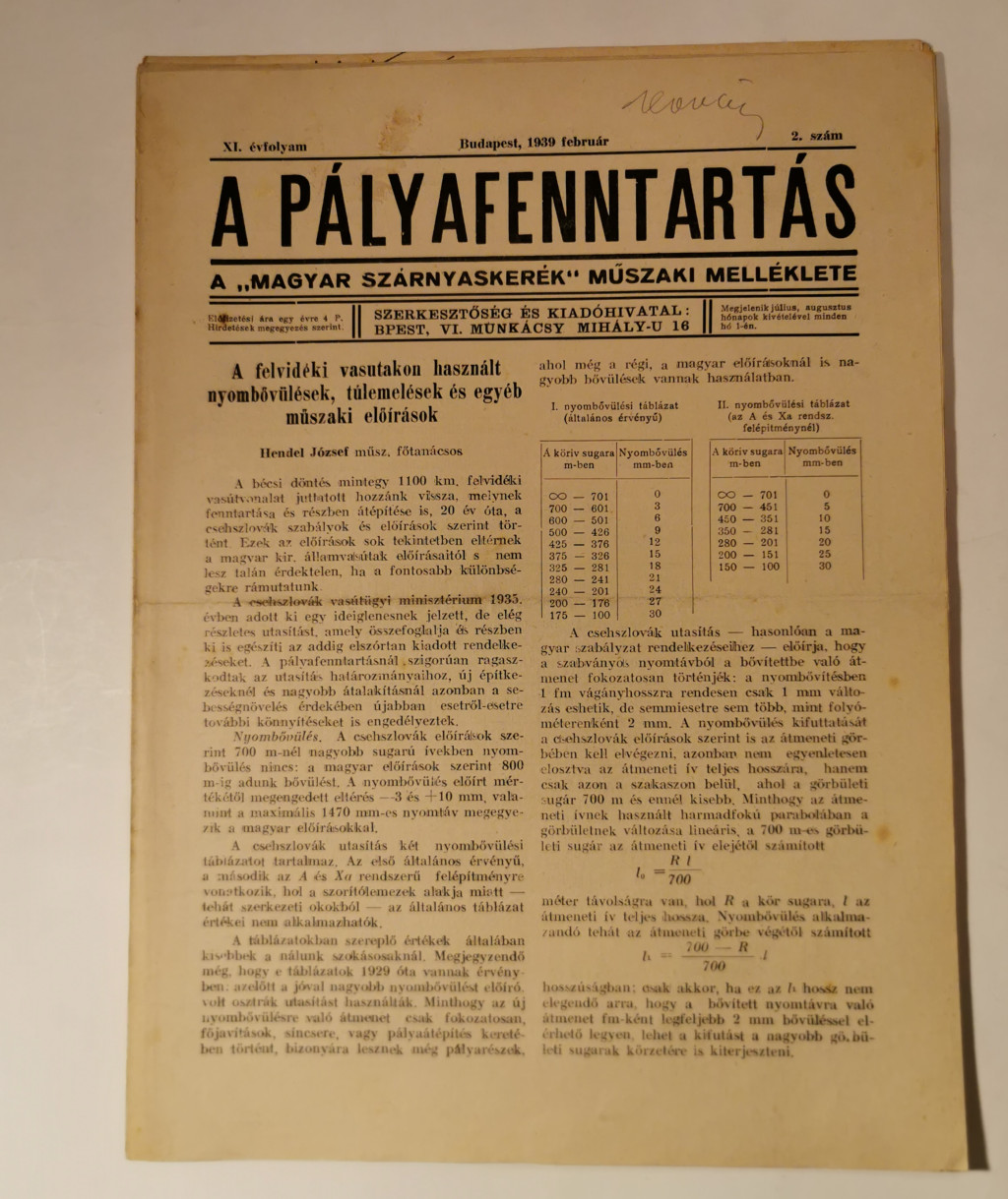 A pályafenntartás - XI. évf. 1939 (teljes)
