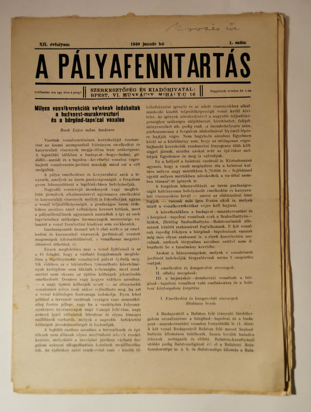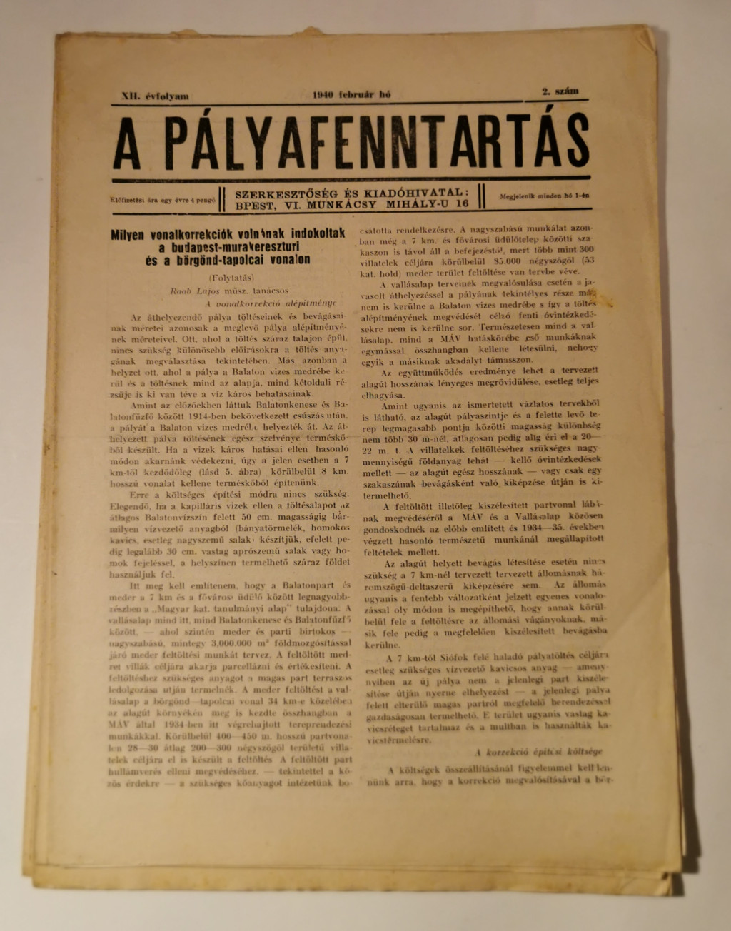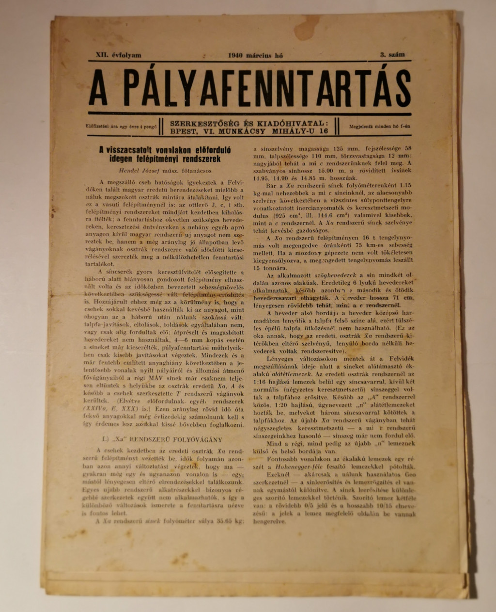A pályafenntartás - XII. évf. 1940 (1-3, 5-11. lapszámok)