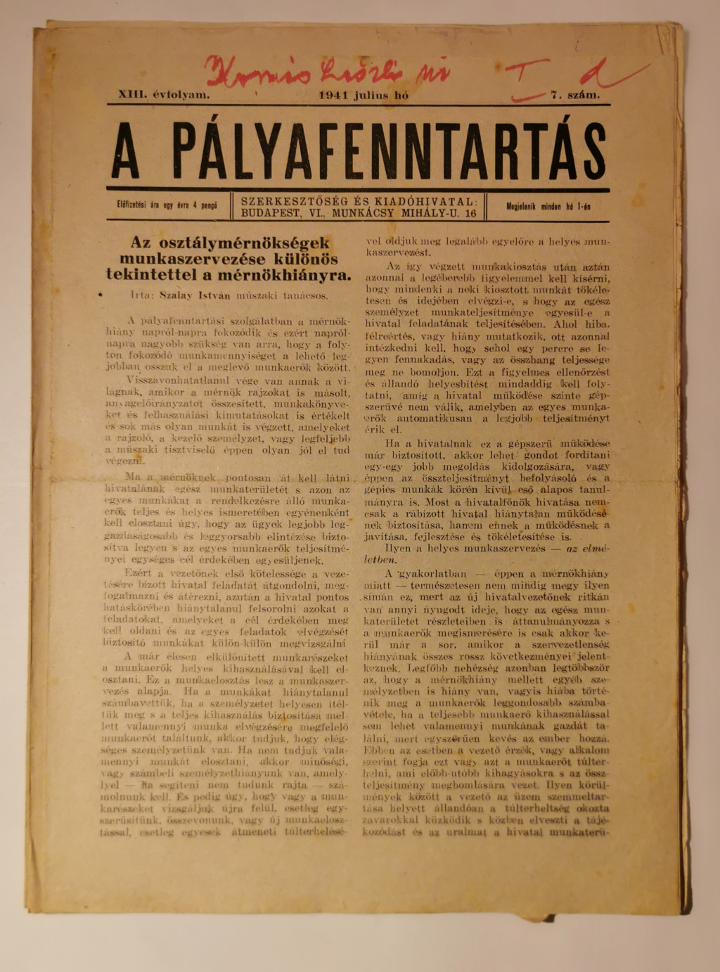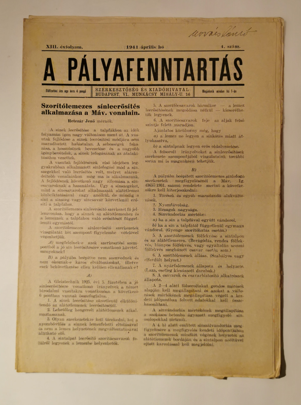 A pályafenntartás - XIII. évf. 1941 (2, 4-6, 8-12. lapszámok)