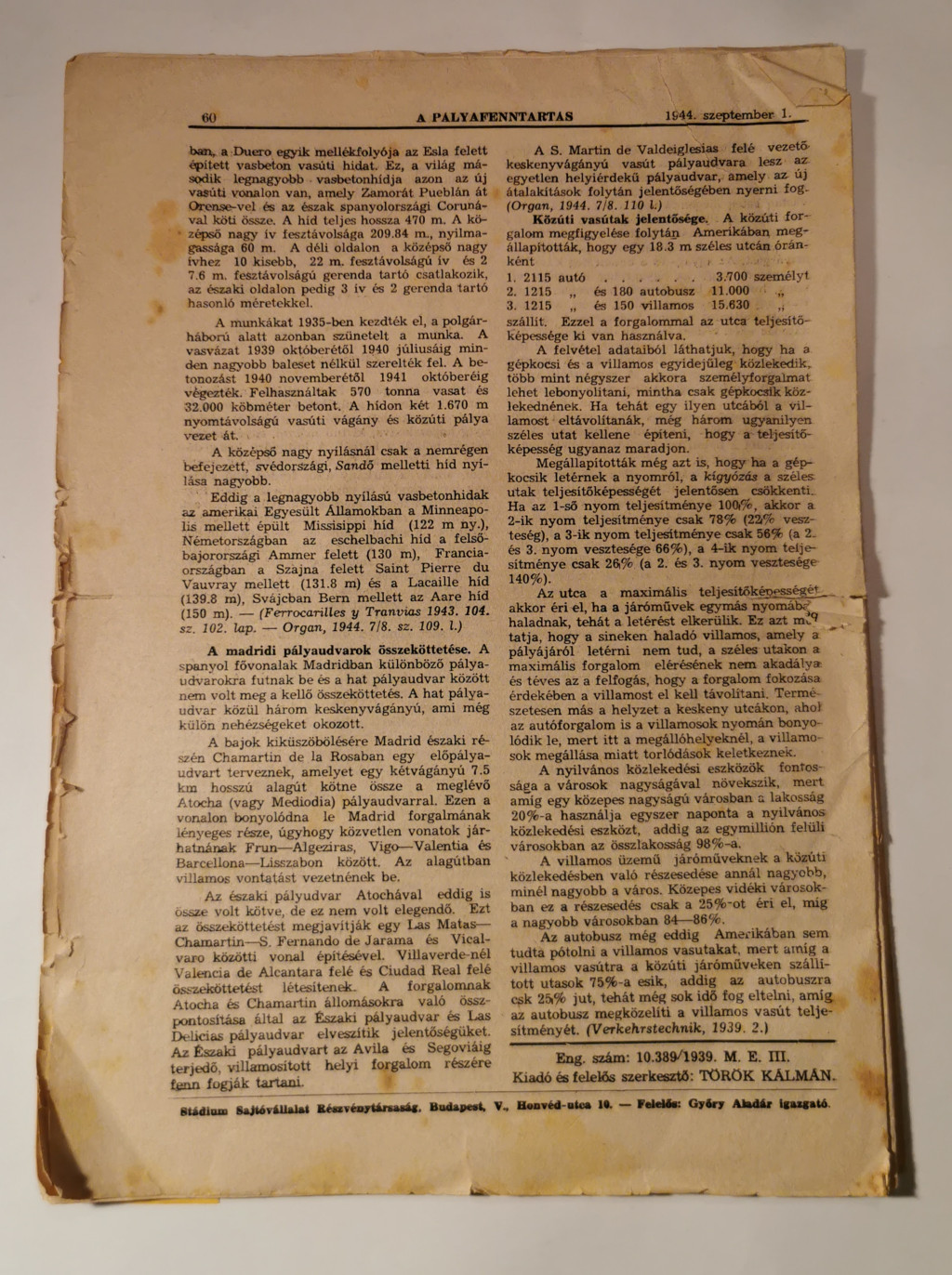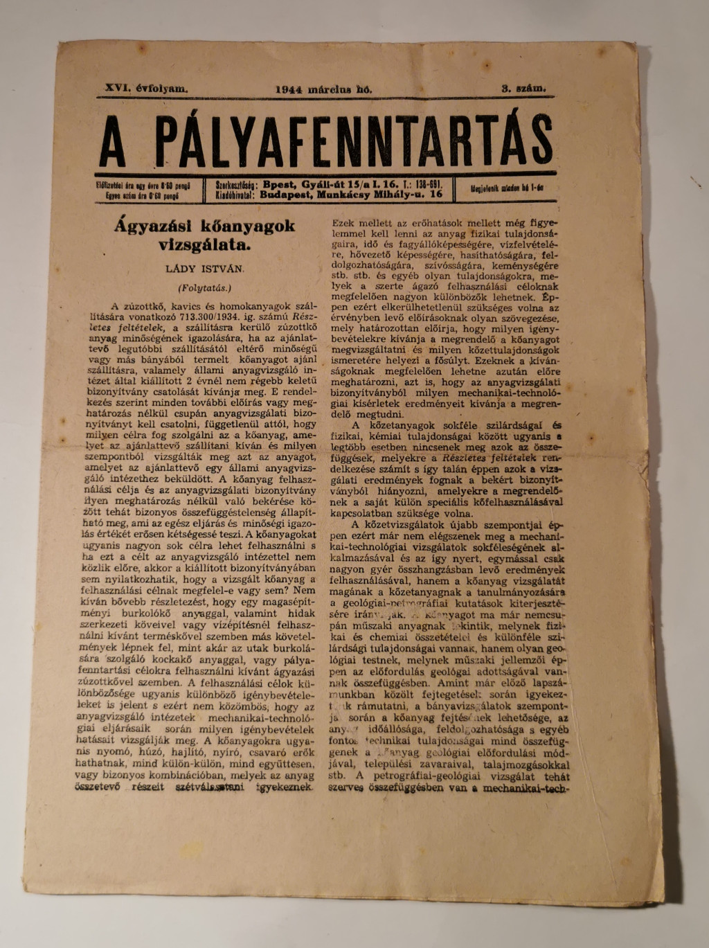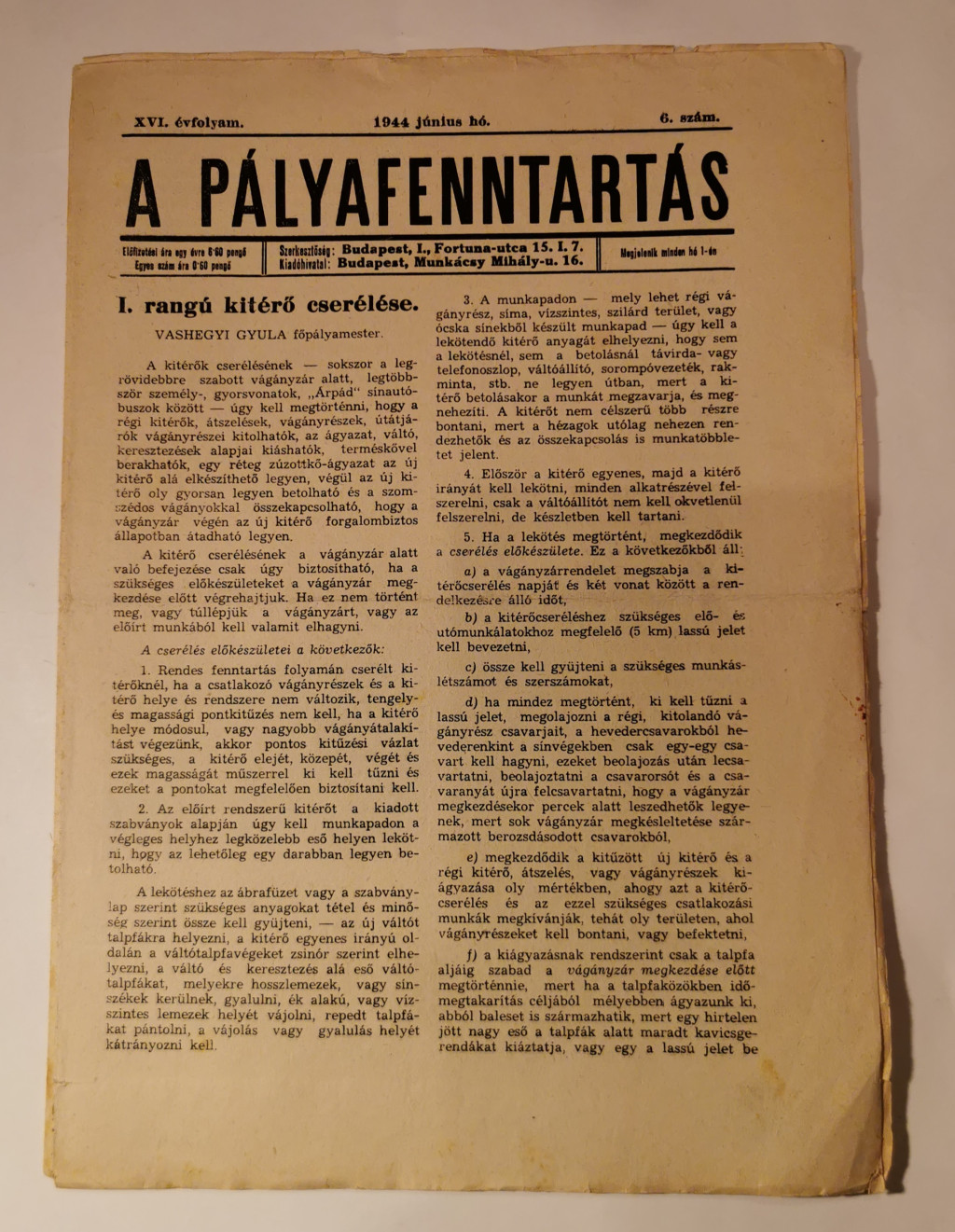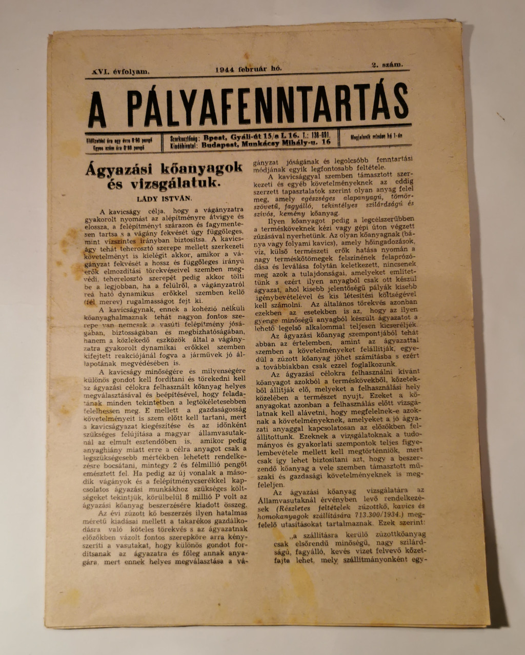 A pályafenntartás - XVI. évf. 1944 (2, 5-7, 9-12. lapszámok)