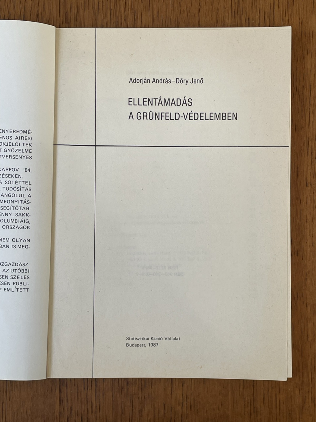 Adorján András – Döry Jenő: Ellentámadás a Grünfeld-védelemben