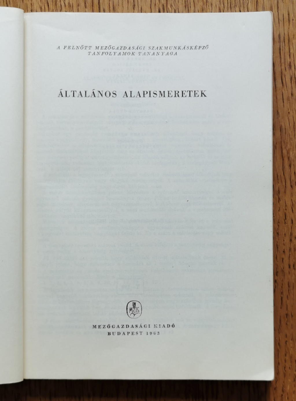 Általános alapismeretek - A felnőtt mezőgazdasági szamunkásképző tanfolyamok tananyaga