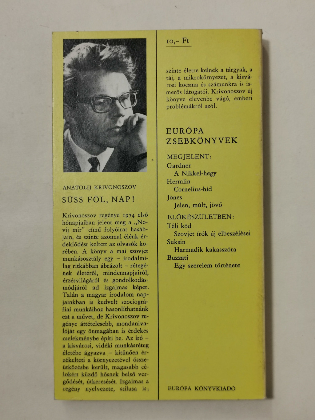 Krivonoszov regénye 1974 első hónapjaiban jelent meg a "Novij mir" című folyóirat hasábjain, és szinte azonnal élénk érdeklődést keltett az olvasók körében. A könyv a mai szovjet munkásosztály egy – irodalmilag ritkábban ábrázolt – rétegének életéről, mindennapjairól, érzésvilágáról és gondolkodásmódjáról ad izgalmas képet. Talán a magyar irodalom napjainkban is kedvelt szociográfiai munkáihoz hasonlíthatnánk ezt a művet, de Krivonoszov regénye áttételesebb, mondanivalóját egy önmagában is érdekes cselekménybe építi be. Az író – a kisvárosi, vidéki munkásréteg életébe ágyazva – kitűnően érzékelteti a környezetével összeütközésbe került, magasabb célokért küzdő hősnek belső vergődését, útkeresését. Izgalmas a regény nyelvezete, stílusa is; szinte életre kelnek a tárgyak, a táj, a mikrokörnyezet, a kisvárosi kocsma és számunkra is ismerős látogatói. Krivonoszov új könyve elevenbe vágó, emberi problémákról szól.