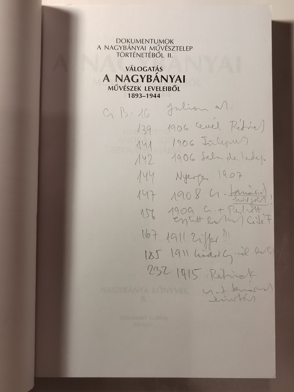 András Edit - Bernáth Mária (szerk.): Válogatás a nagybányai művészek leveleiből 1893-1944