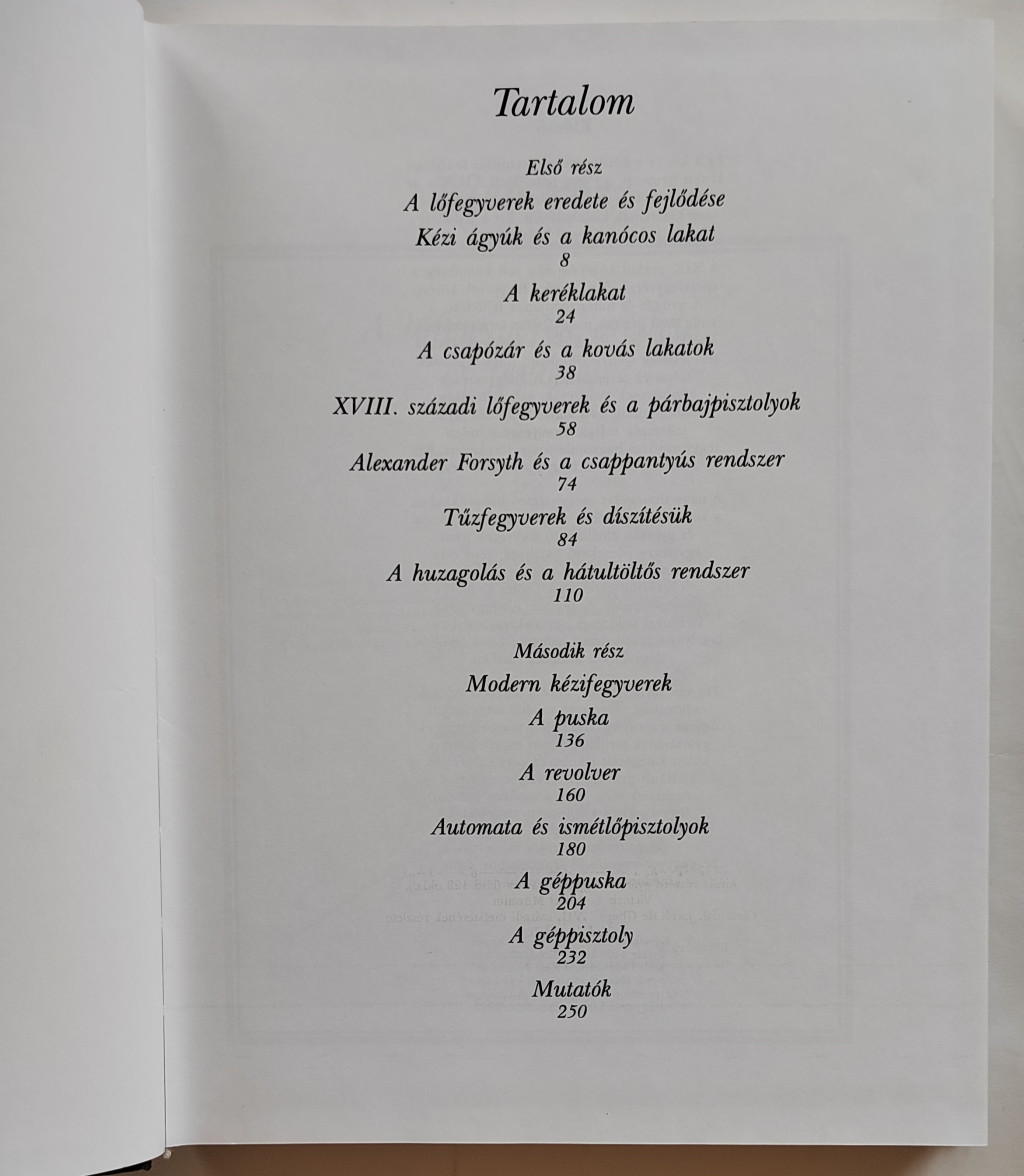 Ez a könyv a kézifegyverek technikai fejlődését követi nyomon, a lőpor feltalálásától kezdve az automata fegyverek modern, gázdugattyús szerkezeteinek kialakulásáig.
