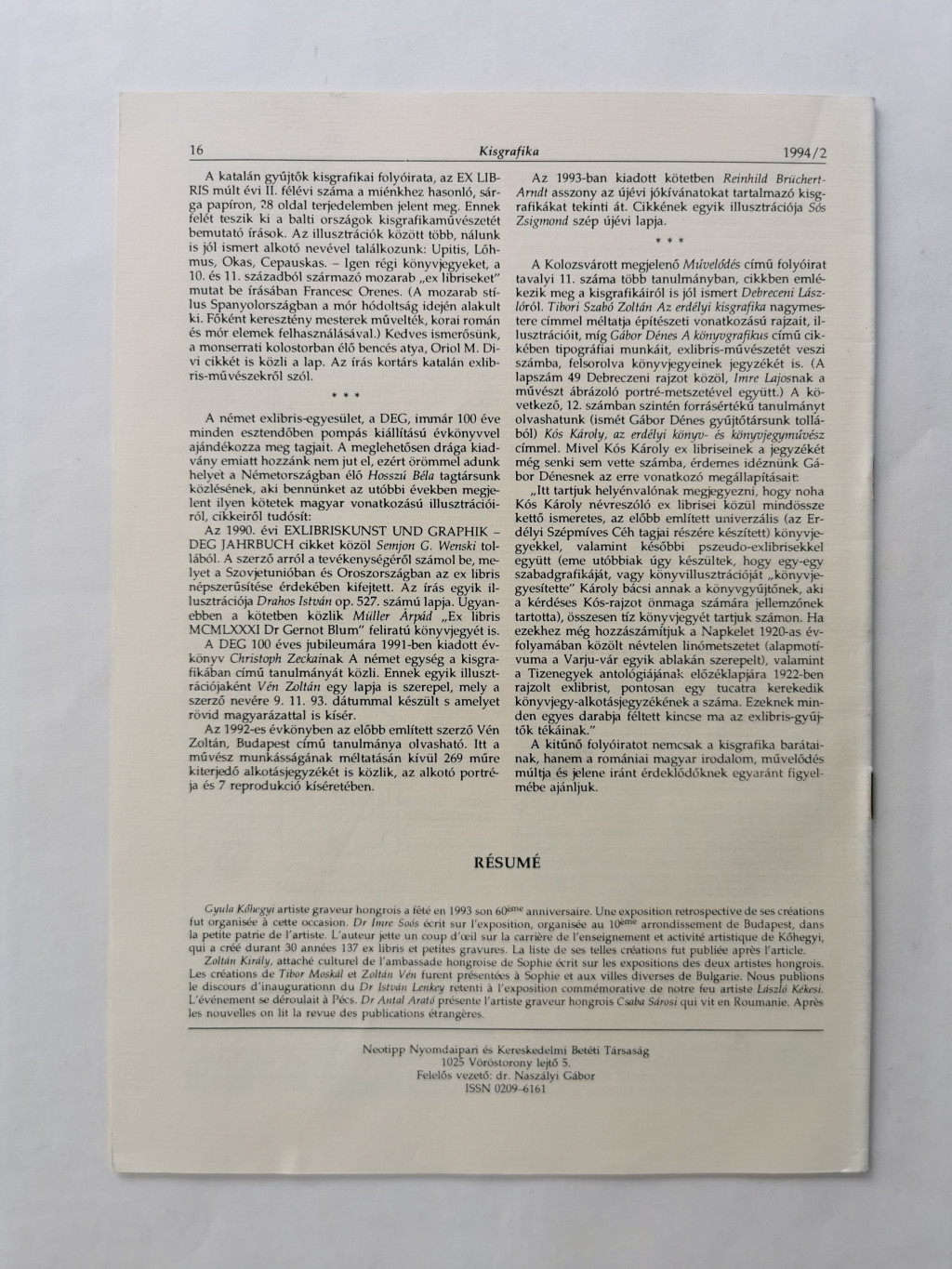 Arató Antal, Dr. (szerk.): Kisgrafika 33. évf. 1-4. sz. + Különszám 1994
