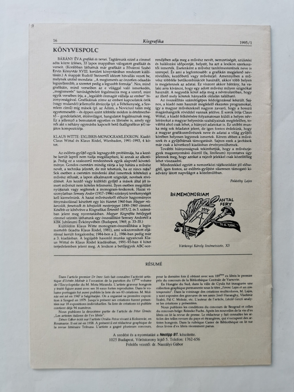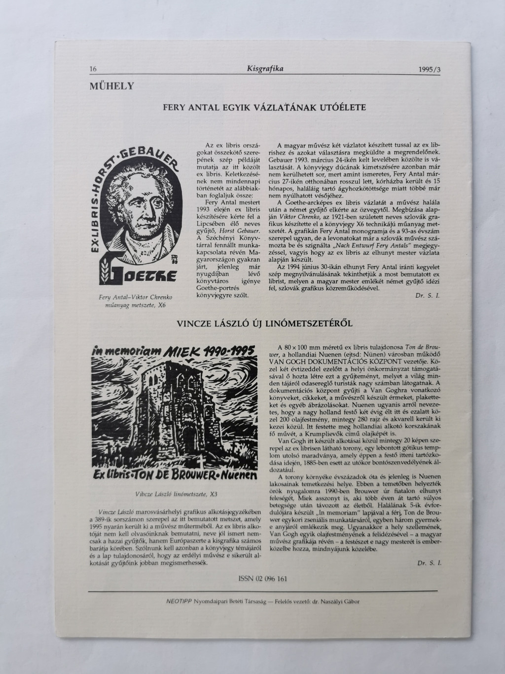 Arató Antal, Dr. (szerk.): Kisgrafika 34. évf. 1-4. sz. 1995