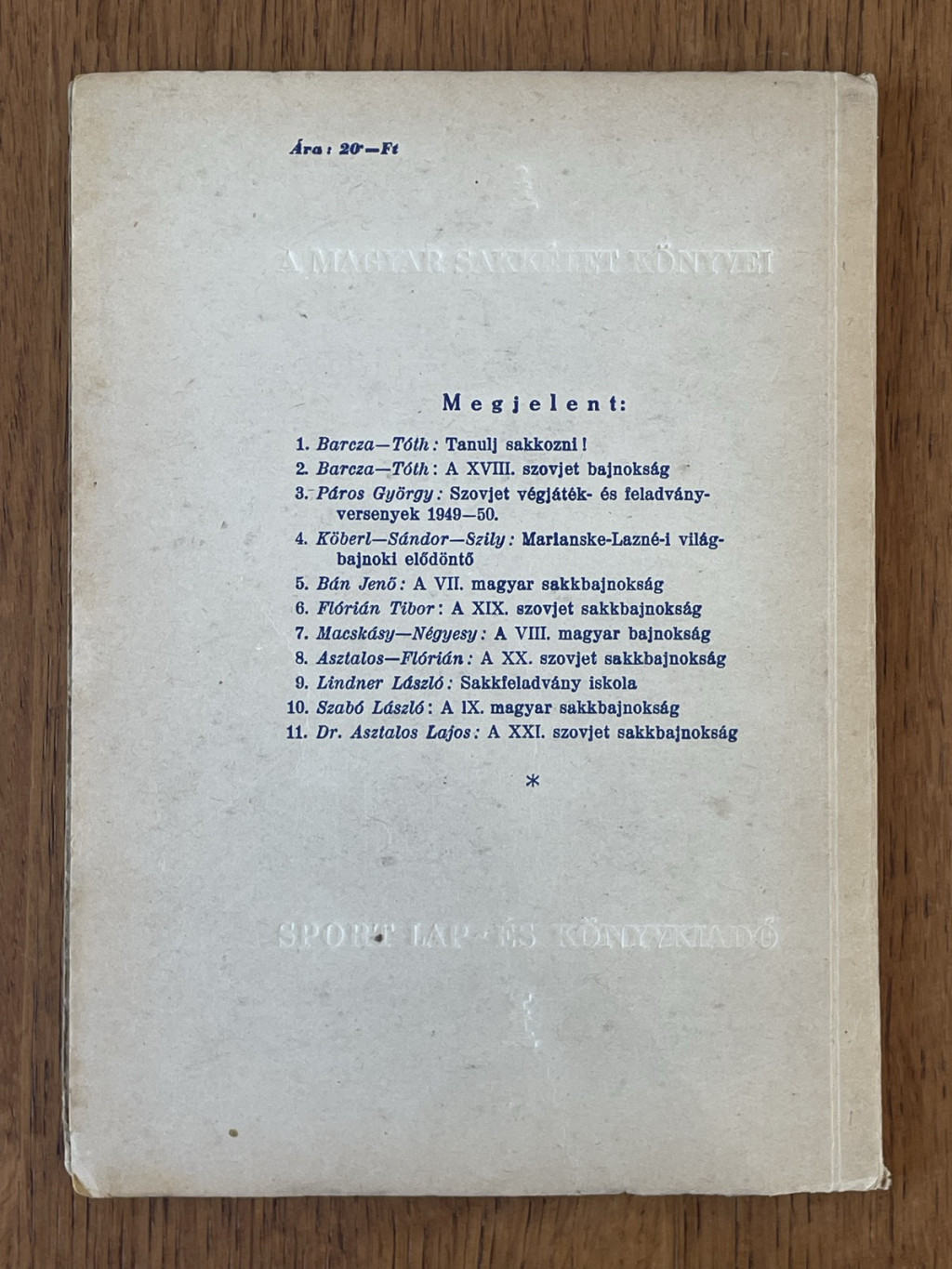 Asztalos Lajos, Dr.: A XXI. szovjet sakkbajnokság (A Magyar Sakkélet Könyvei 11.)