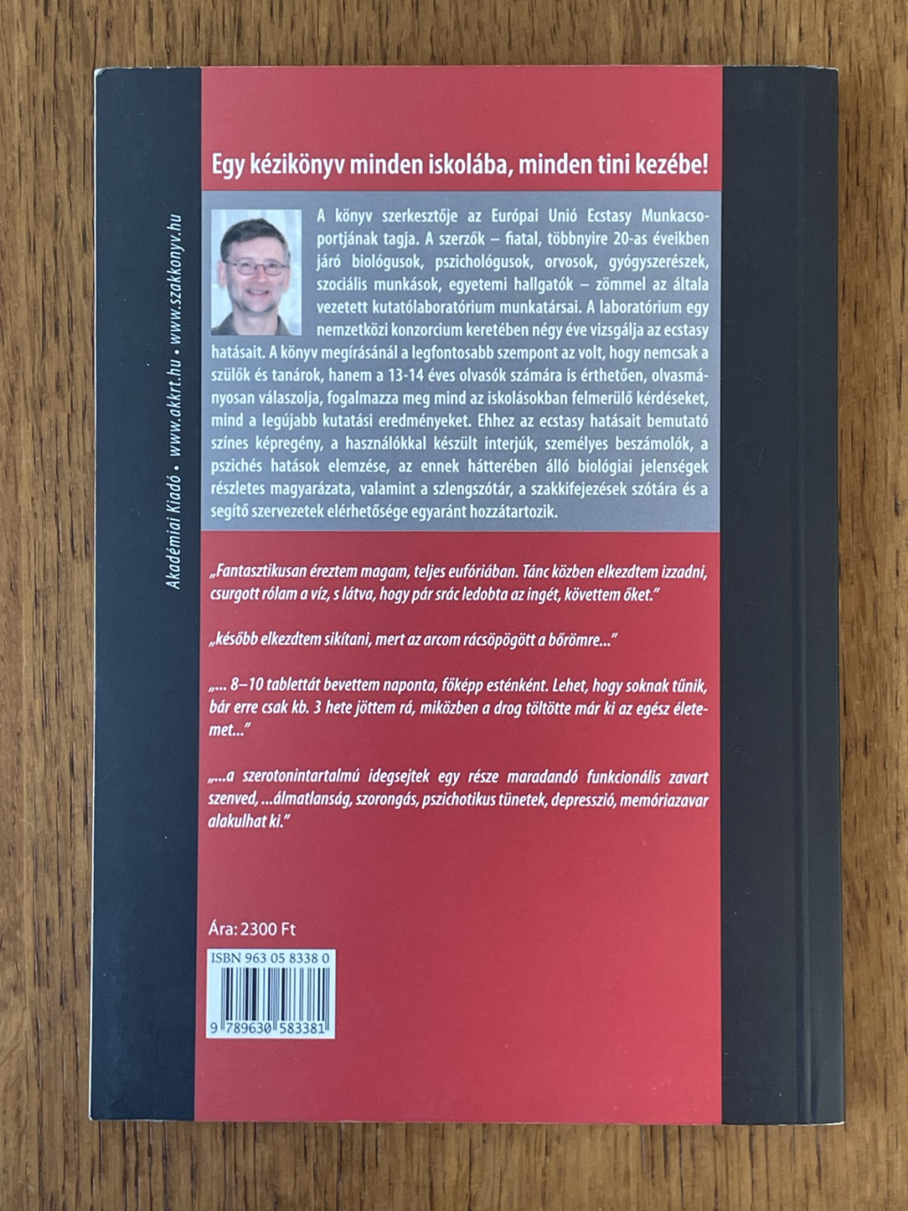 A könyv szerkesztője az Európai Unió Ecstasy Munkacsoportjának tagja. A szerzők – fiatal, többnyire 20-as éveikben járó biológusok, pszichológusok, orvosok, gyógyszerészek, szociális munkások, egyetemi hallgatók – zömmel az általa vezetett kutatólaboratórium munkatársai. A laboratórium egy nemzetközi konzorcium keretében négy éve vizsgálja az ecstasy hatásait. A könyv megírásánál a legfontosabb szempont az volt, hogy nemcsak a szülők és tanárok, hanem a 13-14 éves olvasók számára is érthetően, olvasmányosan válaszolja, fogalmazza meg mind az iskolásokban felmerülő kérdéseket, mind a legújabb kutatási eredményeket. Ehhez az ecstasy hatásait bemutató színes képregény, a használókkal készült interjúk, személyes beszámolók, a pszichés hatások elemzése, az ennek hátterében álló biológiai jelenségek részletes magyarázata, valamint a szlengszótár, a szakkifejezések szótára és a segítő szervezetek elérhetősége egyaránt hozzátartozik.