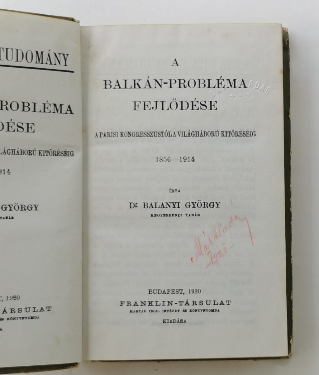 Balanyi György, Dr.: A Balkán-probléma fejlődése