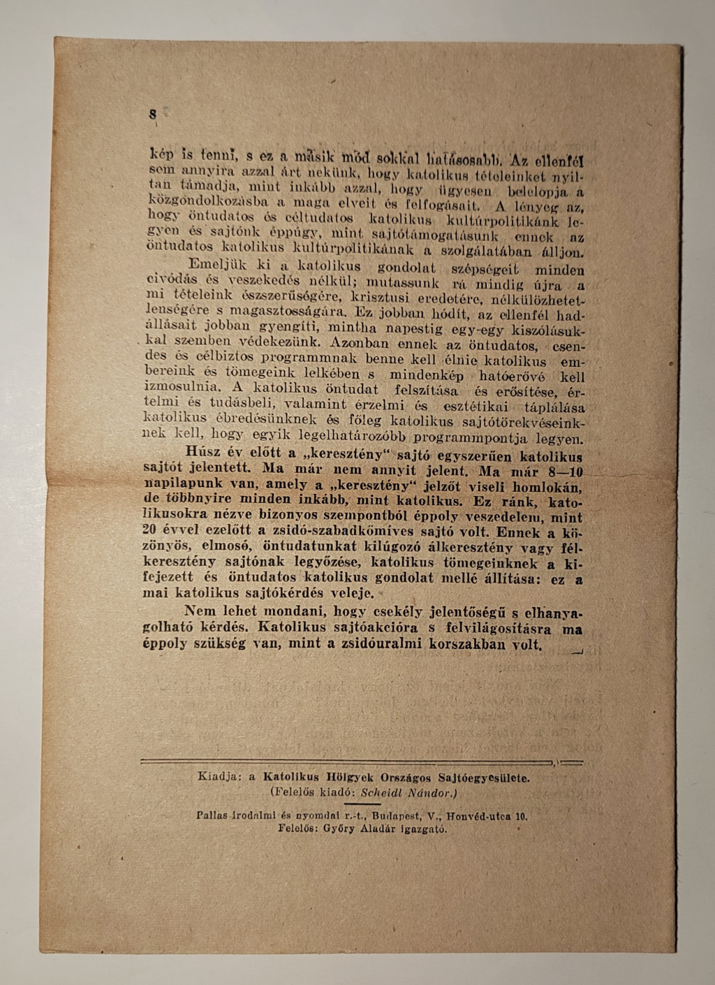 Pallas Irodalmi és Nyomdai Rt. / Katolikus Hölgyek Országos Sajtóegyesülete