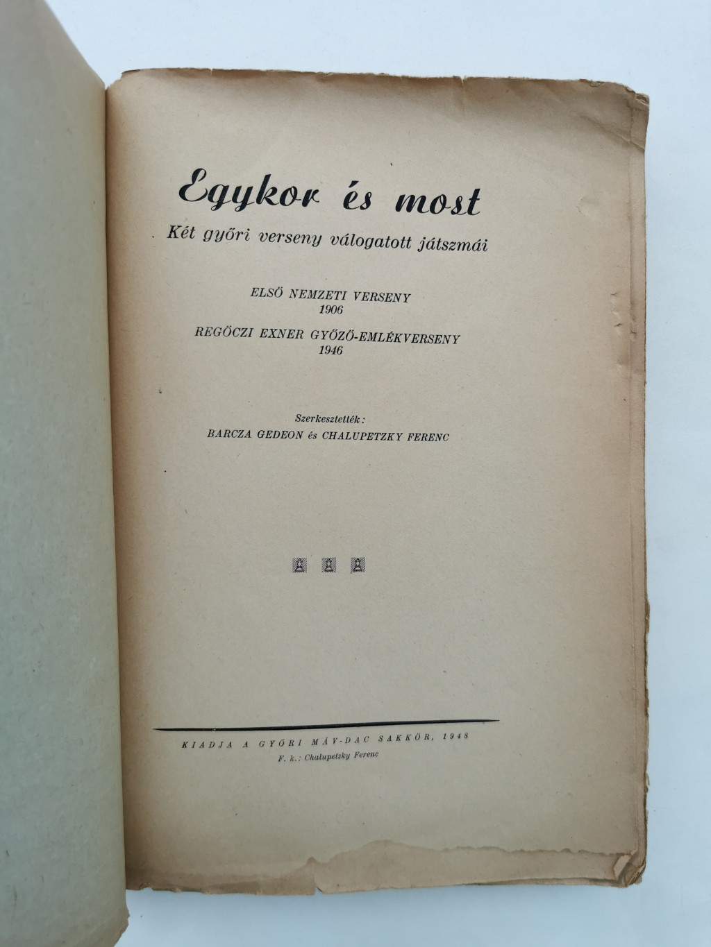Barcza Gedeon - Chalupetzky Ferenc (szerk.): Egykor és most - Két győri verseny válogatott játszmái