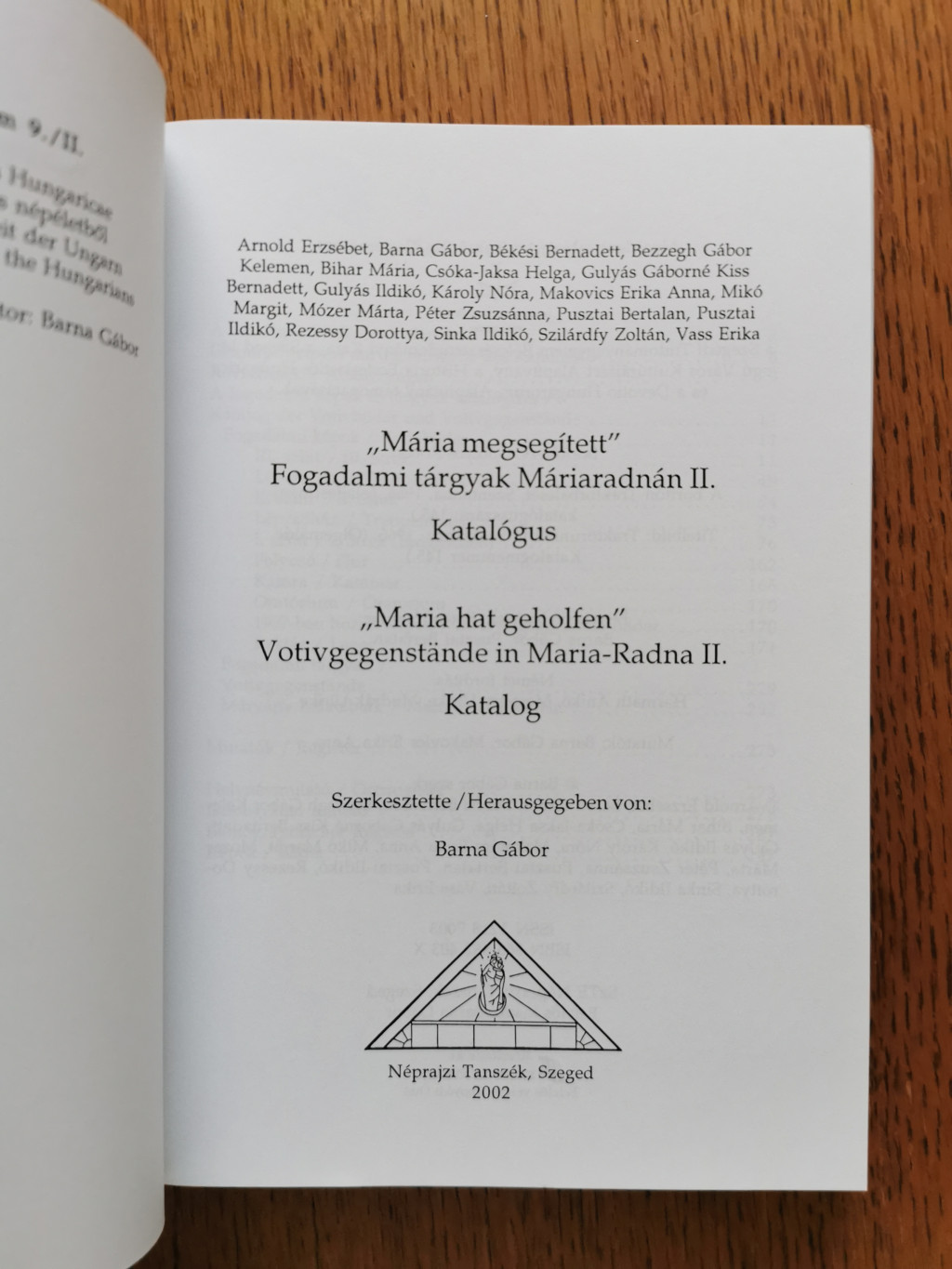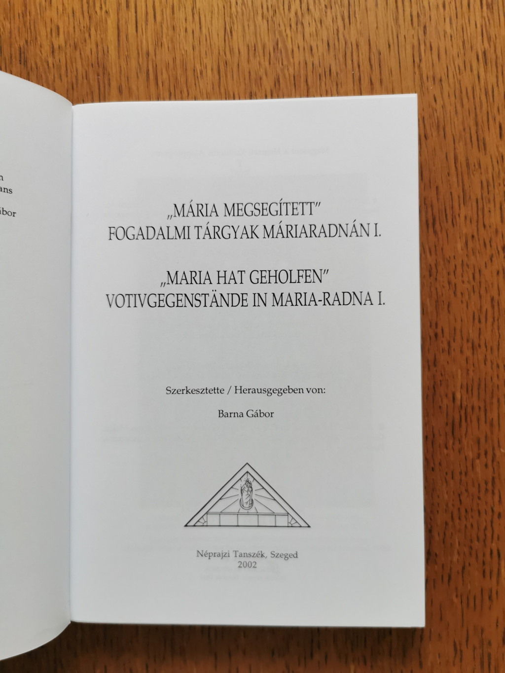 Barna Gábor (szerk.): "Mária megsegített" Fogadalmi tárgyak Máriaradnán I-II. "Maria hat geholfen" Votivgegenstände in Maria-Radna I-II-