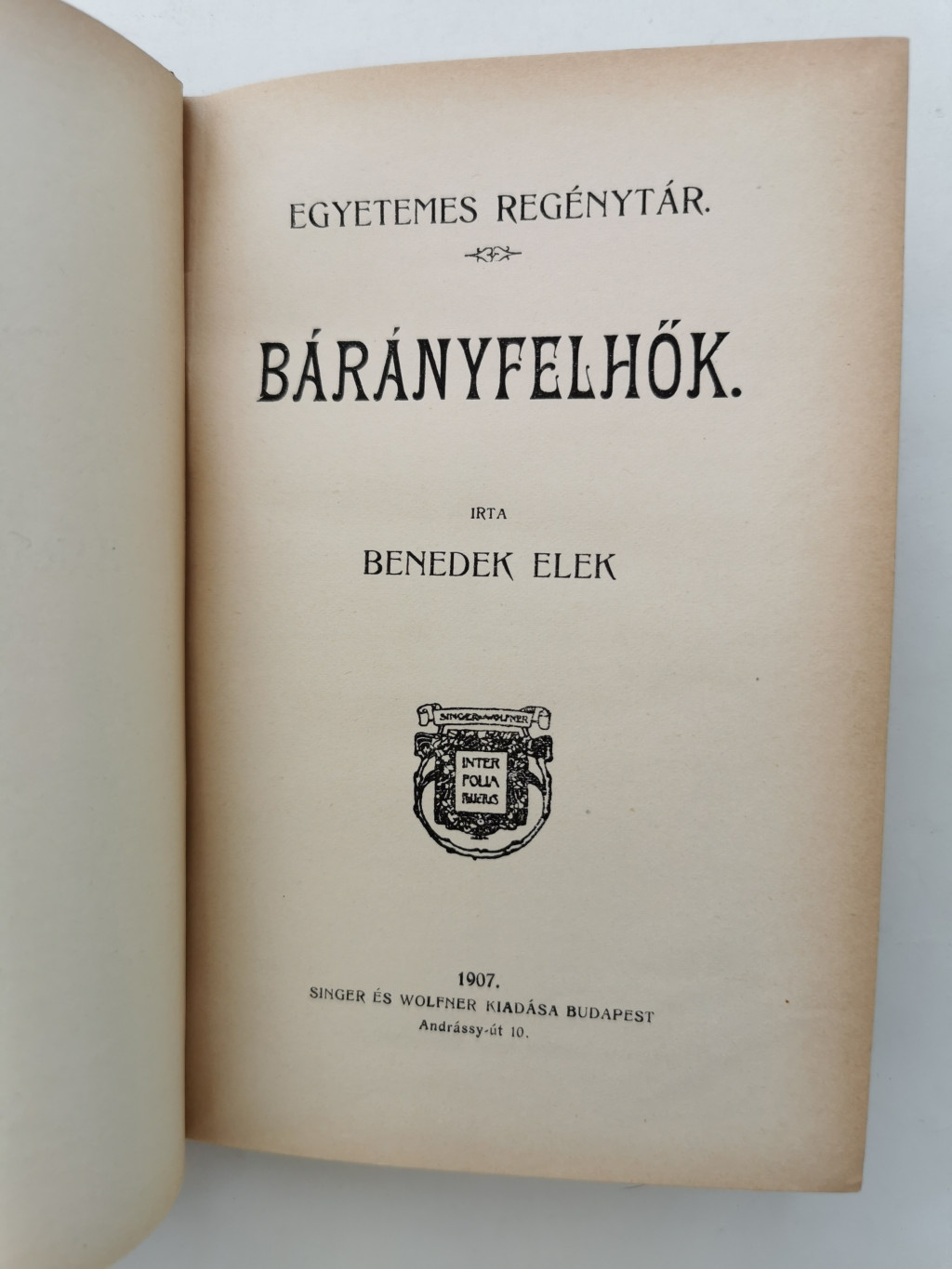Benedek Elek: Bárányfelhők. (Elbeszélések.) Budapest, 1907. Singer és Wolfner (Hungaria ny.) 142 p. Első kiadás.