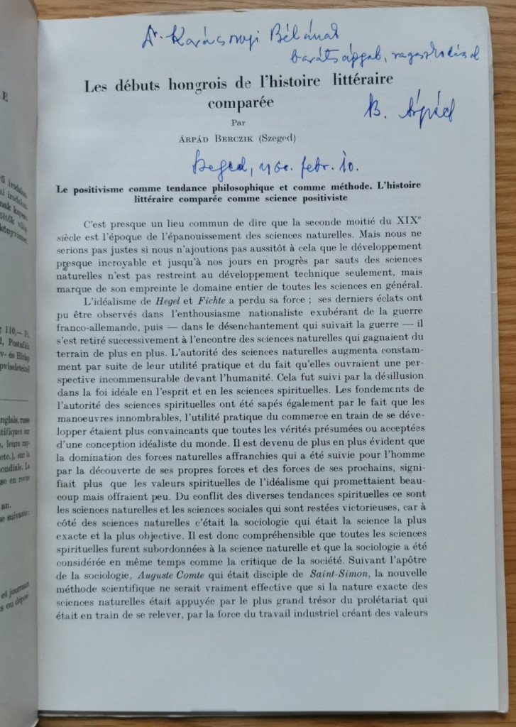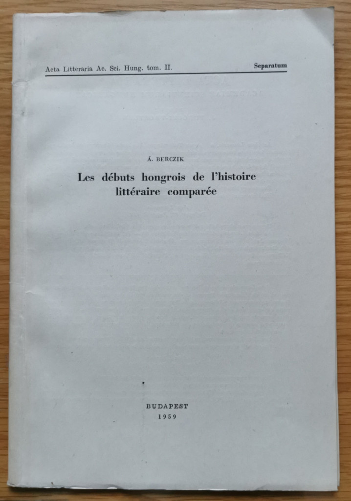 Berczik Árpád: Les débuts hongrois de l'histoire littéraire comparée (Dedikált!)