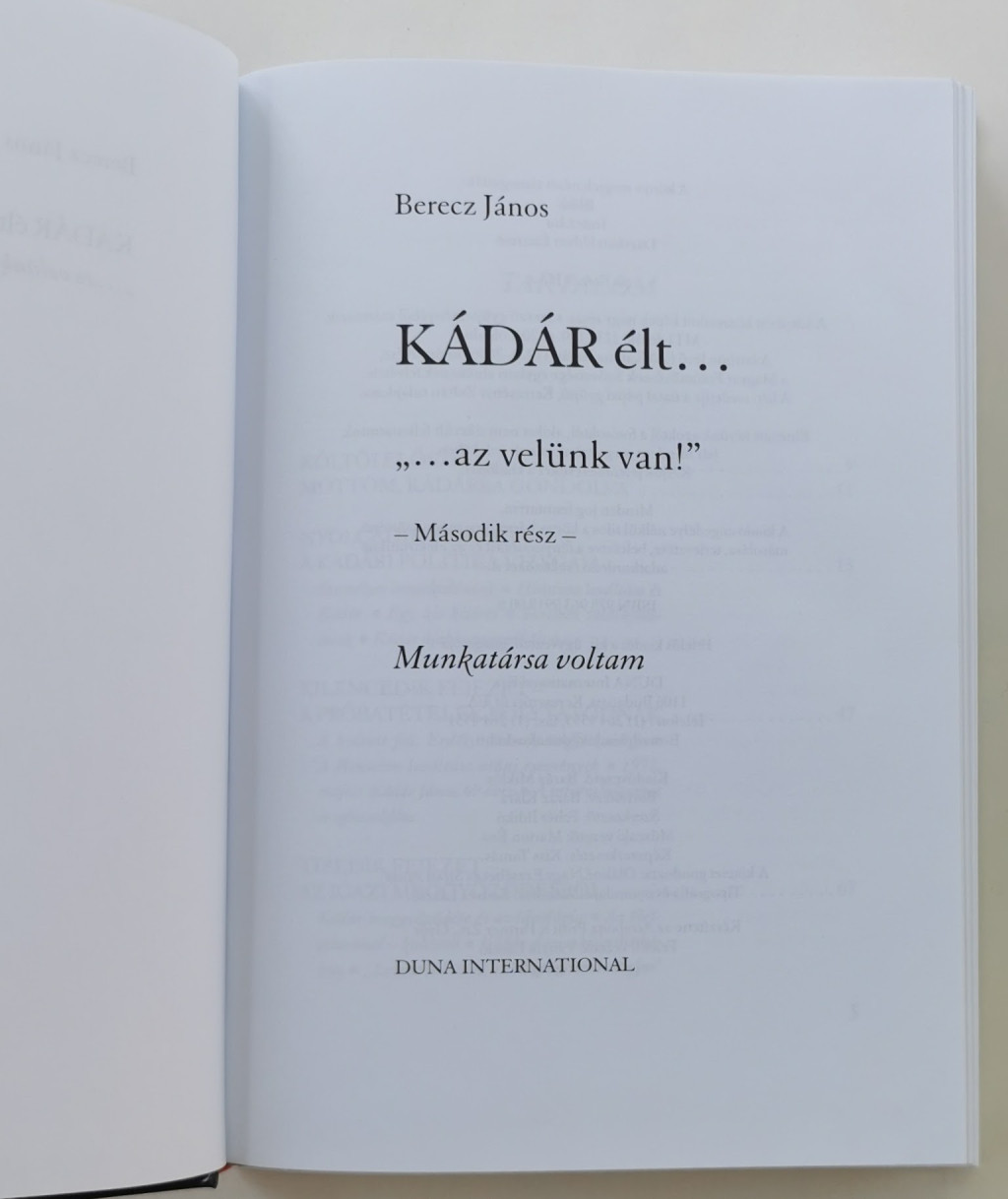 A könyv második kötete arról az időszakról szól, amikor a szerző már közvetlenül Kádár János mellett dolgozott.