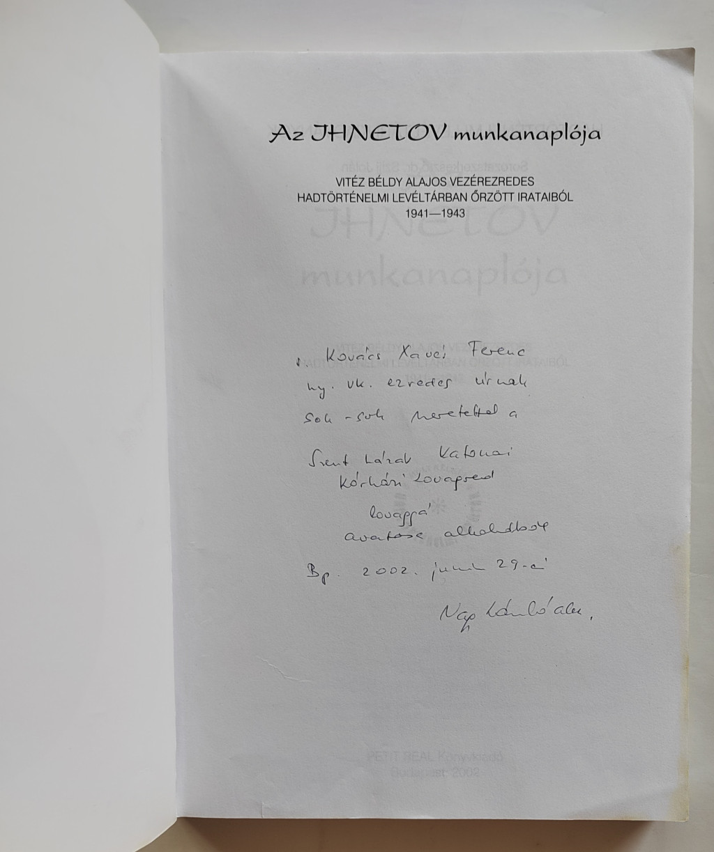 Vitéz Béldy Alajos vezérezredes Hadtörténelmi Levéltárban őrzött irataiból 1941-1943