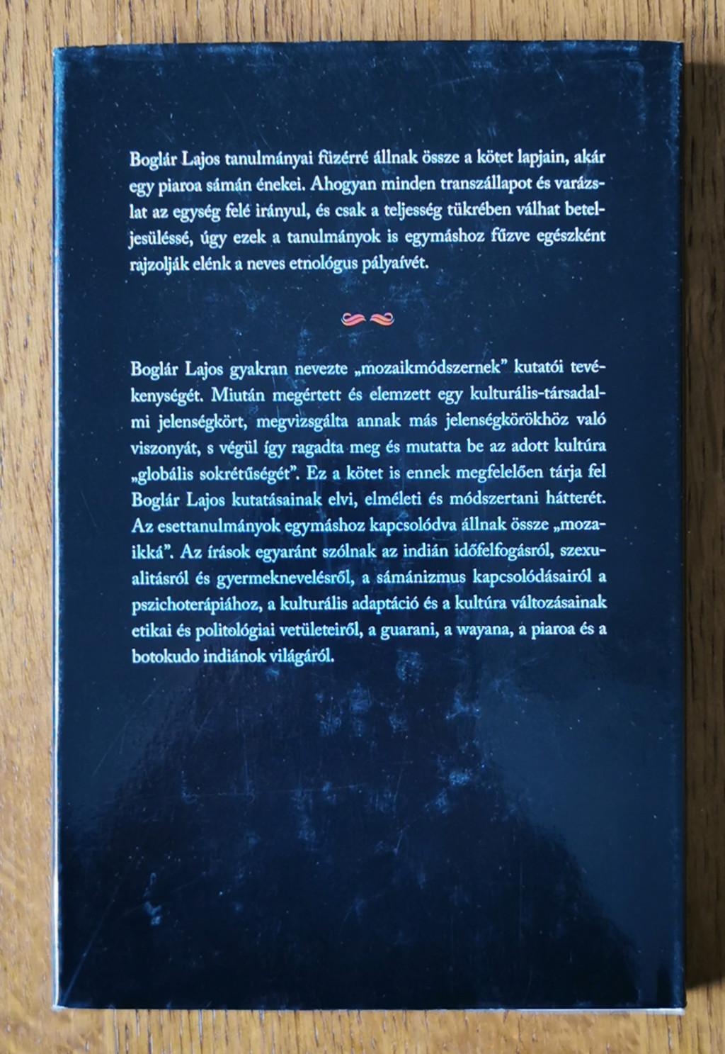Boglár Lajos tanulmányai füzérré állnak össze a kötet lapjain, akár egy piaroa sámán énekei. Ahogyan minden transzállapot és varázslat az egység felé irányul, és csak a teljesség tükrében válhat beteljesüléssé, úgy ezek a tanulmányok is egymáshoz fűzve egészként rajzolják elénk a neves etnológus pályaívét.