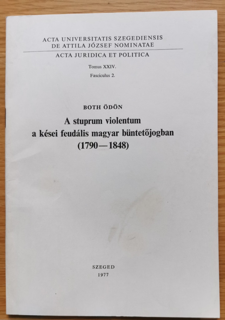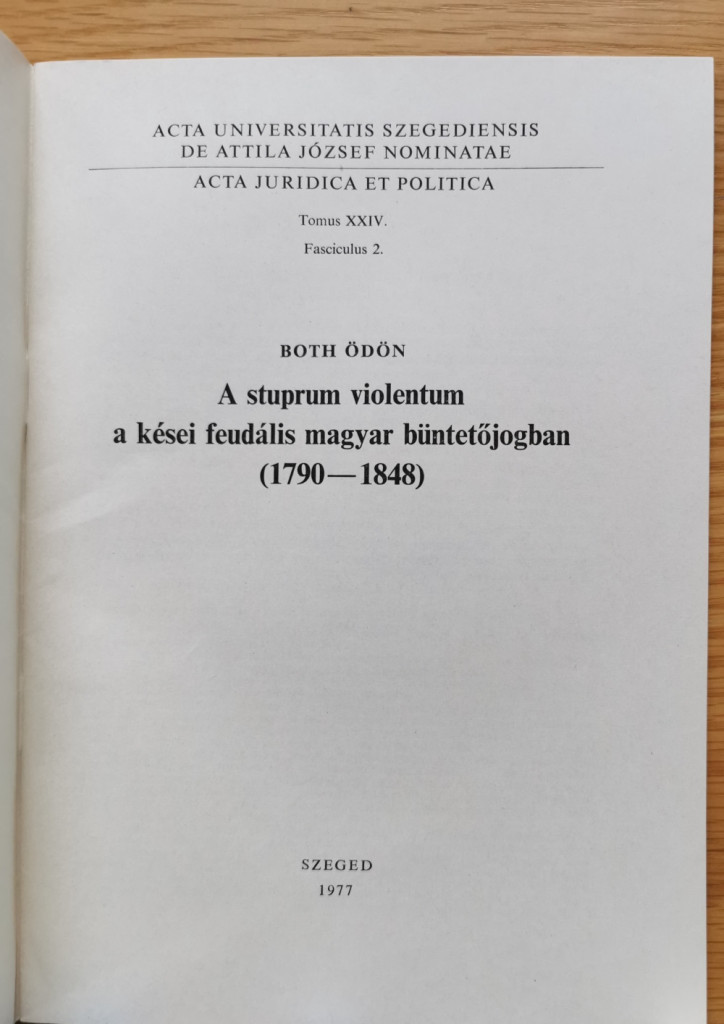 Both Ödön: A stuprum violentum a kései feudális magyar büntetőjogban (1790-1848)