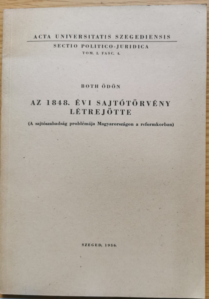 Both Ödön: Az 1848. évi sajtótörvény létrejötte