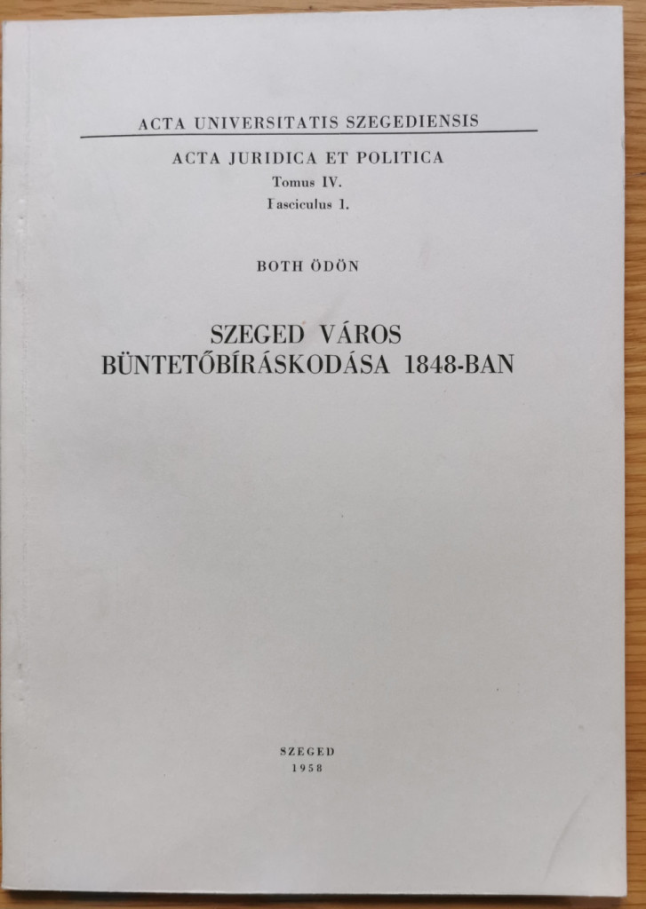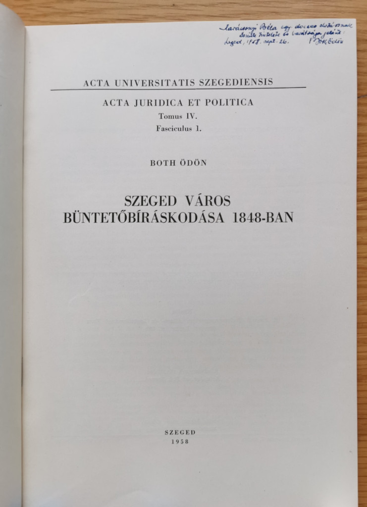 Both Ödön: Szeged város büntetőbíráskodása 1848-ban (Dedikált!)