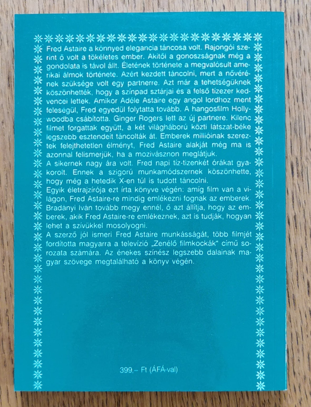 Fred Astaire a könnyed elegancia táncosa volt. Rajongói szerint ő volt a tökéletes ember. Akitől a gonoszságnak még a gondolata is távol állt. Életének története a megvalósult amerikai álmok története. Azért kezdett táncolni; mert a nővérének szüksége volt egy partnerre. Azt már a tehetségüknek köszönhették, hogy a színpad sztárjai és a felső tízezer kedvencei lettek. Amikor Adéle Astaire egy angol lordhoz ment feleségül, Fred egyedül folytatta tovább. A hangosfilm Hollywoodba csábította. Ginger Rogers lett az új partnere. Kilenc filmet forgattak együtt, a két világháború közti látzsat-béke legszebb esztendeit táncolták át. Emberek millióinak szereztek felejthetetlen élményt. Fred Astaire alakját még ma is azonnal felismerjük, ha a mozivásznon meglátjuk. A sikernek nagy ára volt. Fred napi tíz-tizenkét órákat gyakorolt. Ennek a szigorú munkamódszernek köszönhette, hogy még a hetedik x-en túl is tudott táncolni. Egyik életrajzírója ezt írta könyve végén: amíg film van a világon, Fred Astaire-re mindig emlékezni fognak az emberek. Bradányi Iván tovább megy ennél, ő azt állítja, hogy az emberek, akik Fred Astaire-re emlékeznek, azt is tudják, hogyan lehet a szívükkel mosolyogni. A szerző jól ismeri Fred Astaire munkásságát, több filmjét fordította magyarra a televízió "Zenélő filmkockák" című sorozata számára. Az énekes színész legszebb dalainak magyar szövege megtalálható a könyv végén.