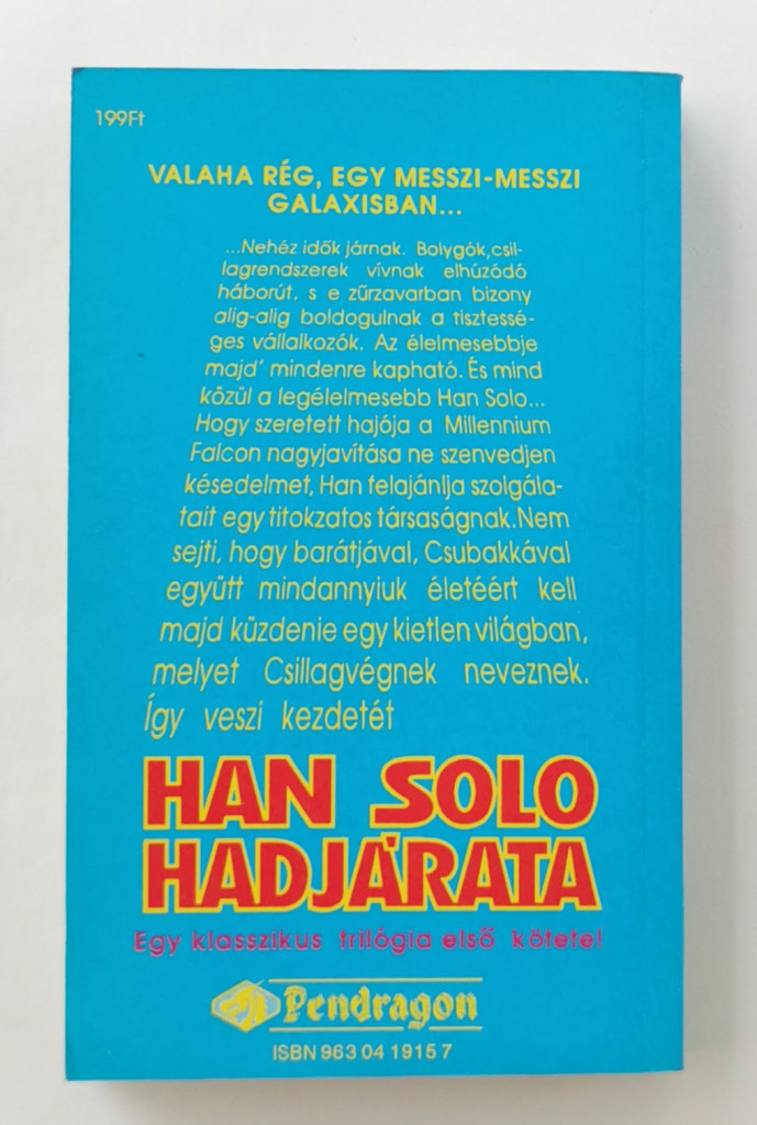 Nehéz idők járnak. Bolygók; csillagrendszerek vívnak elhúzódó háborút, s e zűrzavarban bizony alig-alig boldogulnak a tisztességes vállalkozók. Az élelmesebbje majd' mindenre kapható. És mind közül a legélemesebb Han Solo... Hogy szeretett hajója a Millennium Falcon nagyjavítása ne szenvedjen késedelmet, Han felajánlja szolgálatait egy titokzatos társaságnak. Nem sejti, hogy barátjával, Csubakkával együtt mindannyiuk életéért kell majd küzdenie egy kietlen világban, melyet Csillagvégnek neveznek. Így veszi kezdetét Han Soló hadjárata.