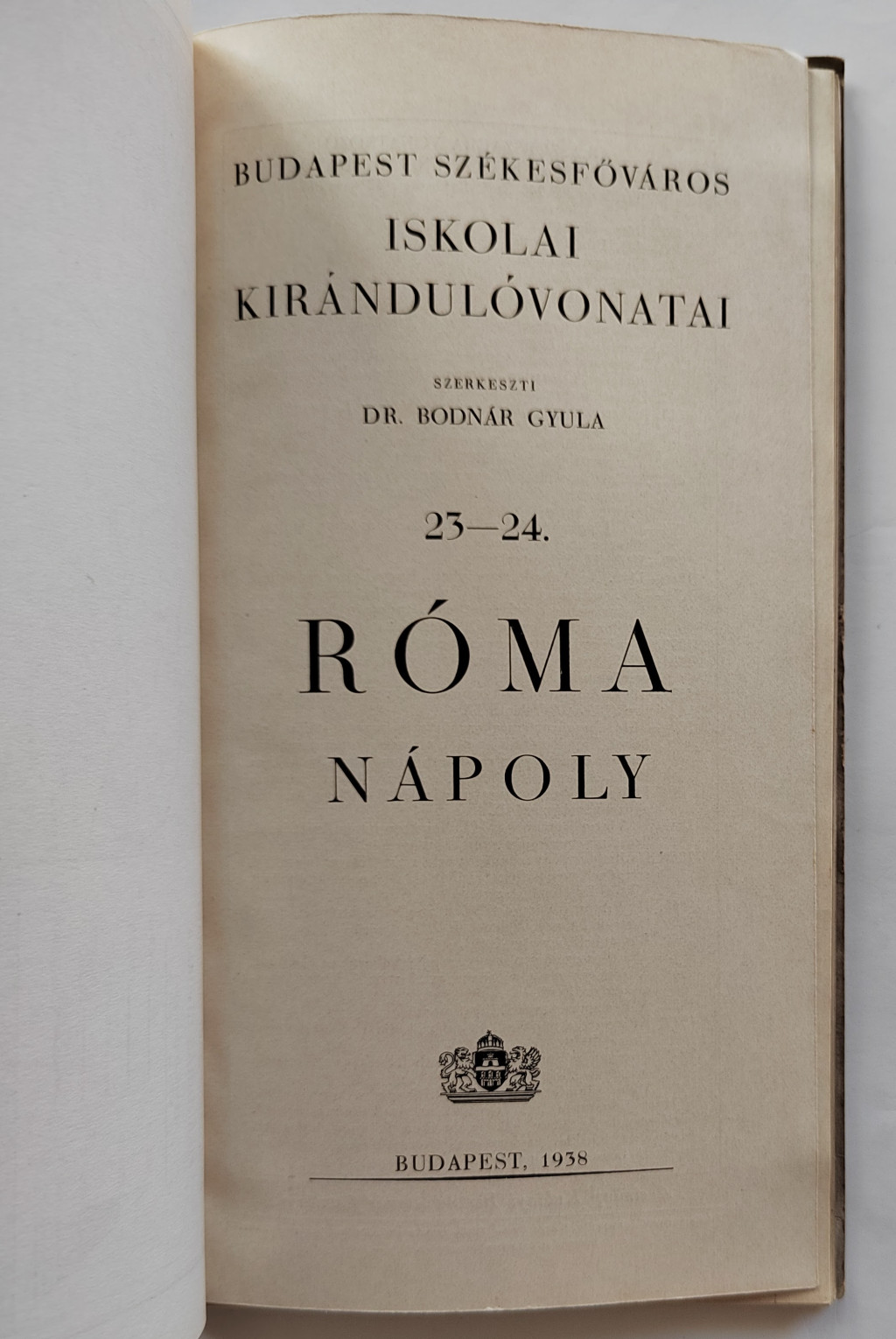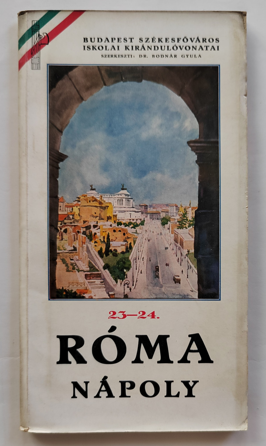 Budapest Székesfőváros Iskolai Kirándulóvonatai 23-24. Róma Nápoly Szerk.: Dr. Bodnár Gyula. Bp., 1938. Budapest Székesfőváros Házinyomdája, 36 p. 7 t. (térképek, kihajtható). Számos szövegközti fényképpel. Kiadói, színes, illusztrált papírkötésben.
