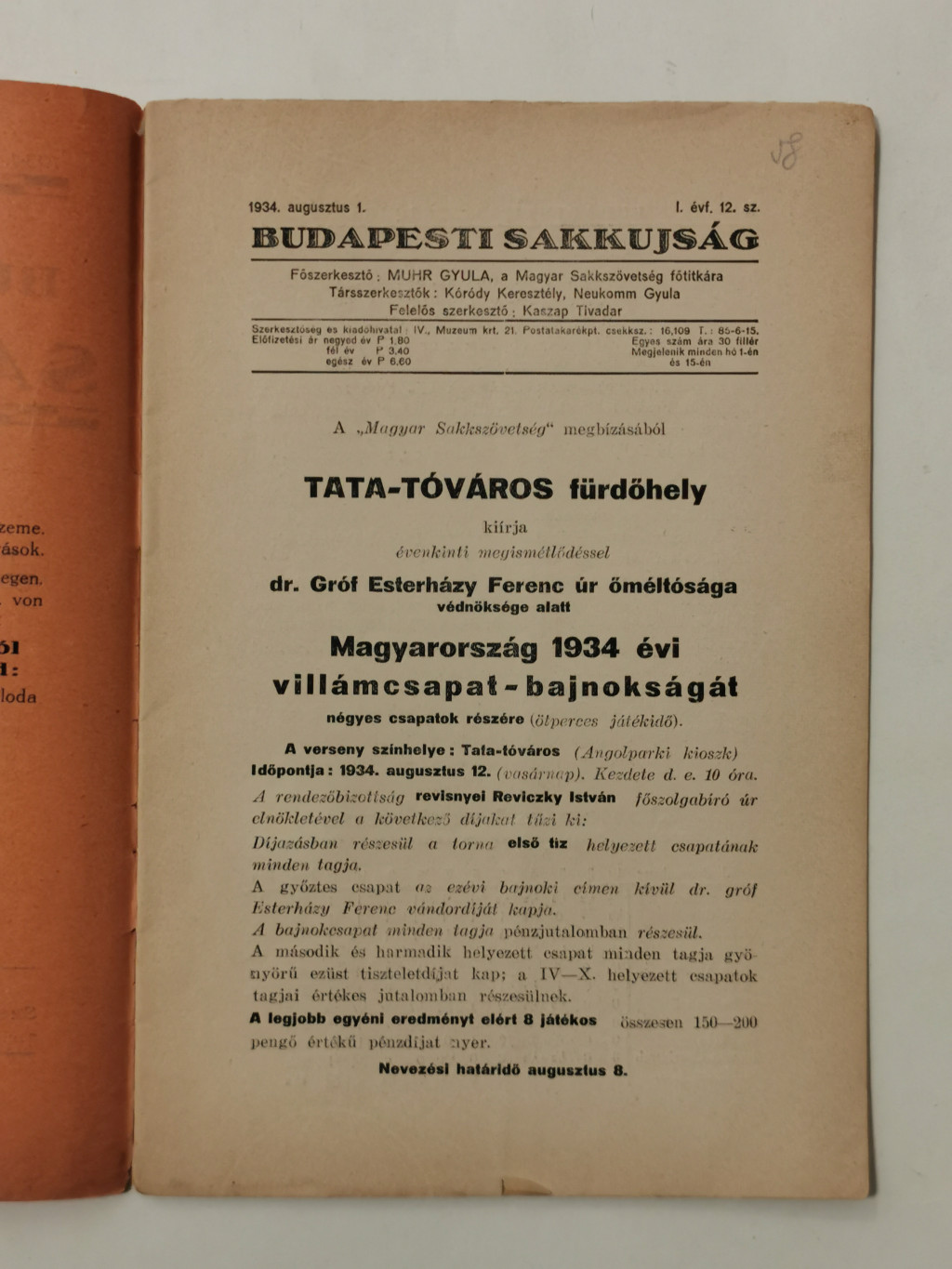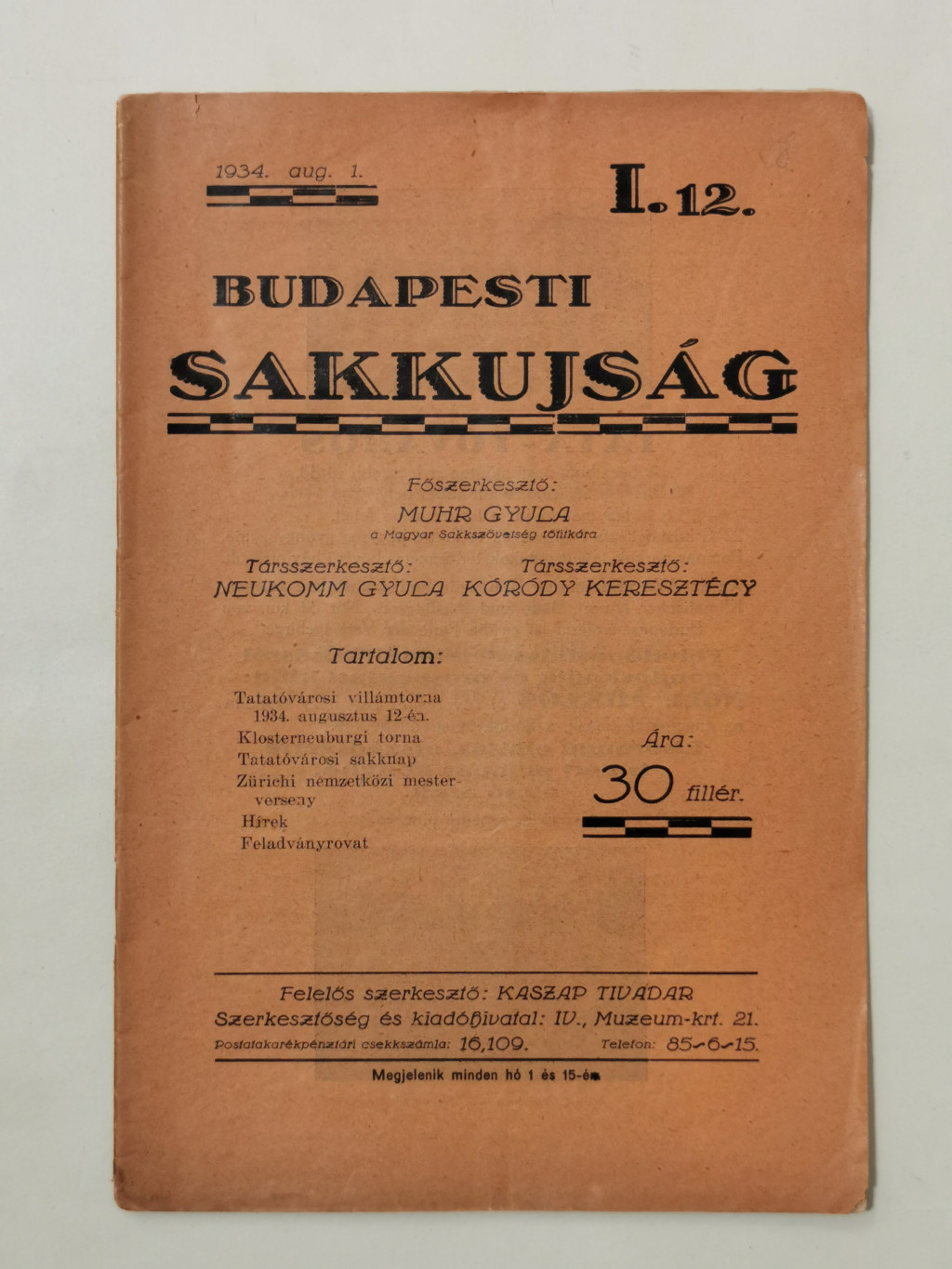 Budapesti Sakkujság I. évf. 12. sz. - 1934. augusztus 1.