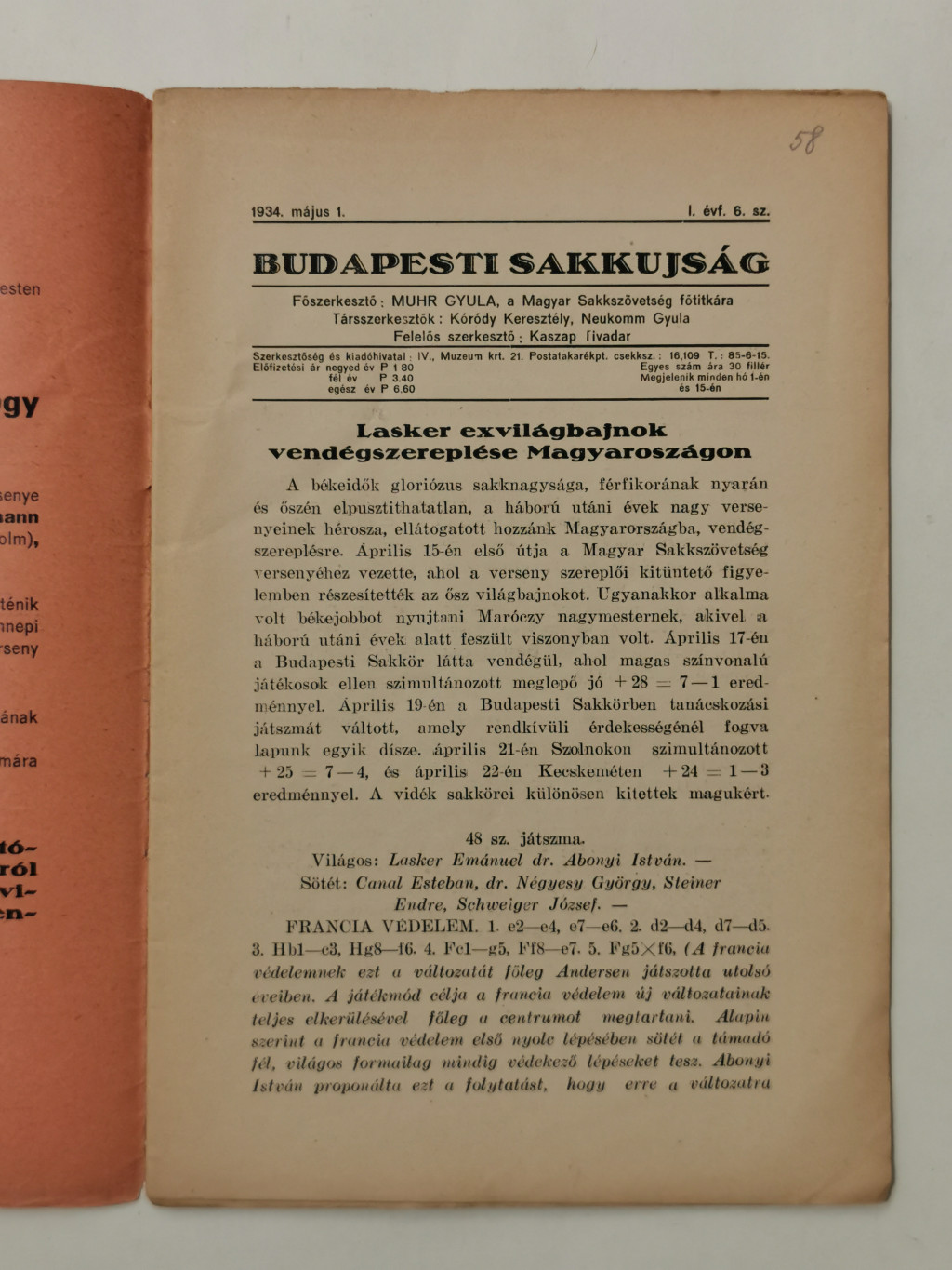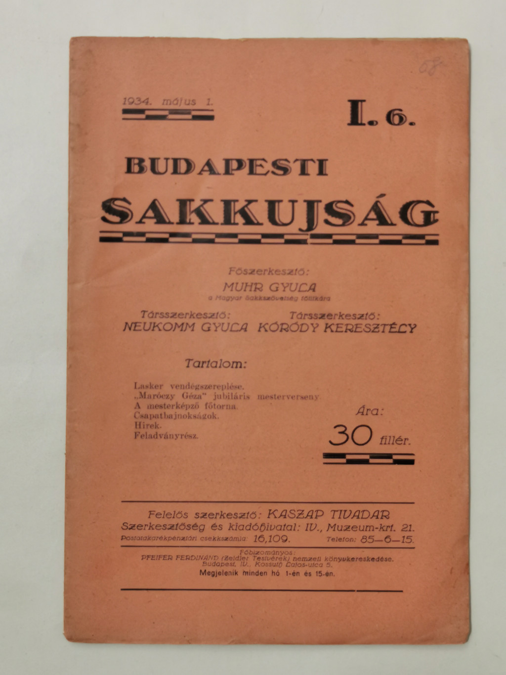Budapesti Sakkujság I. évf. 6. sz. - 1934. május 1.