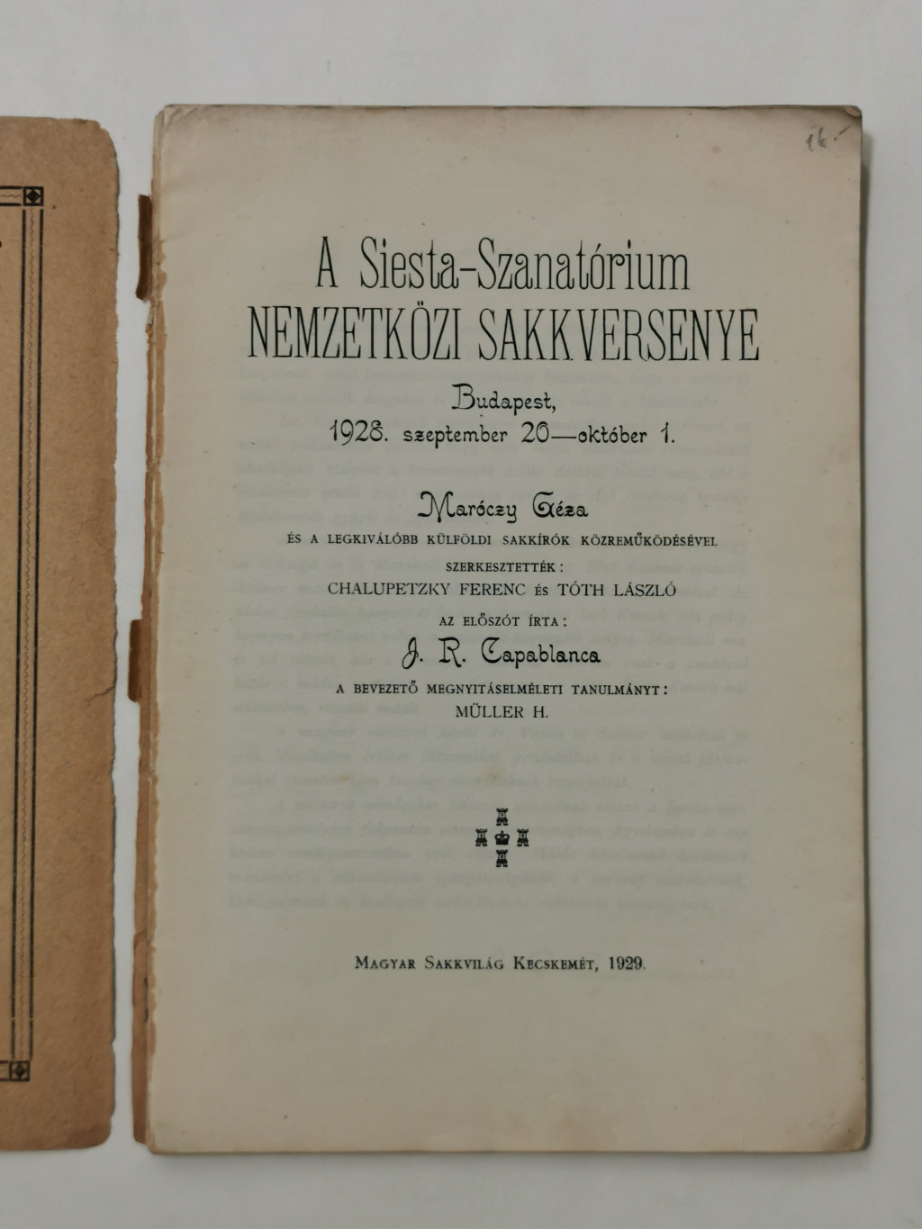 Chalupetzky Ferenc - Tóth László (szerk.): A siesta-szanatórium nemzetközi sakkversenye