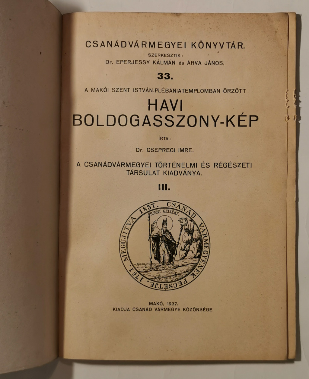 Csepregi Imre, Dr.: A makói Szent István-plébániatemplomban őrzött Havi Boldogasszony-kép (Csanádvármegyei Könyvtár 33.)