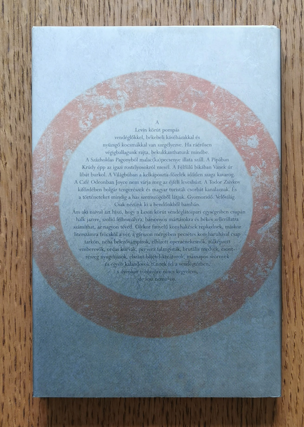 A Levin körút pompás vendéglőkkel; békebeli kávéházakkal és nyüzsgő kocsmákkal van szegélyezve. Ballagjunk végig rajta, s kukkantsunk be mindegyikbe! A Százholdas Pagonyból malac(ka)pecsenye illata száll. A Pipában Krúdy épp az igazi rostélyosokról mesél. A Félfülű Bikában Vanek úr libát burkol. A Világbúban a kelkáposzta-főzelék időtlen szaga kavarog. A Café Odeonban Joyce nem várja meg az éjféli leveshúst. A Todor Zsivkov kifőzdében bolgár tengerészek és magyar turisták csorbát kanalaznak. És a történeteket mindig a has szemszögéből látjuk. Gyomoridő. Velővilág. Csak nézünk ki a bendőnkből bambán. Ám aki naivul azt hiszi, hogy a Levin körút vendéglátóipari egységeiben csupán halk jazzre, szolid félhomályra, bársonyos mártásokra és békés zellerillatra számíthat, az nagyon téved. Olykor fanyelű konyhakések repkednek, máskor literszámra fröcsköl a vér, a gárszon mérgében pecsétes konyharuhával csap tarkón, néha belezővámpírok, elhízott operaénekesnők, túlképzett emberevők, ordas kurvák, perverz falangisták, brutális medvék, csontrészeg nyugdíjasok, elszánt bájétel-kreátorok, másnapos szörnyek és egyéb kalandorok tűnnek fel a vendégtérben, s ilyenkor többnyire nincs kegyelem, de lesz nemulass.