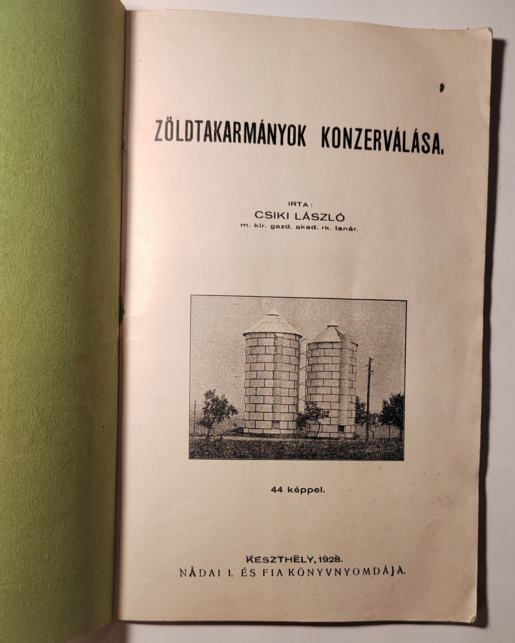 Csiki László: Zöldtakarmányok konzerválása. Keszthely, 1928., Nádai I. és Fia. Szövegközti illusztrációkkal. 80 p. Kiadói papírkötésben.