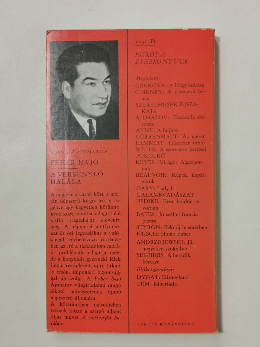 A magyar olvasók közt is méltán népszerű kirgiz író új regénye egy kegyetlen körülmények közt, távol a világtól élő kisfiú tragédiáját eleveníti meg. A népmesei motívumokat és az ősi legendákat a valósággal egybeötvöző történetében az író a társadalom morális problémáit világítja meg, de a bonyolult gyermeki lélek finom rezdüléseit, apró titkait is értőn, imponáló biztonsággal ábrázolja. A Fehér hajó Ajtmatov világirodalmi rangú alkotó művészetének újabb nagyszerű állomása.