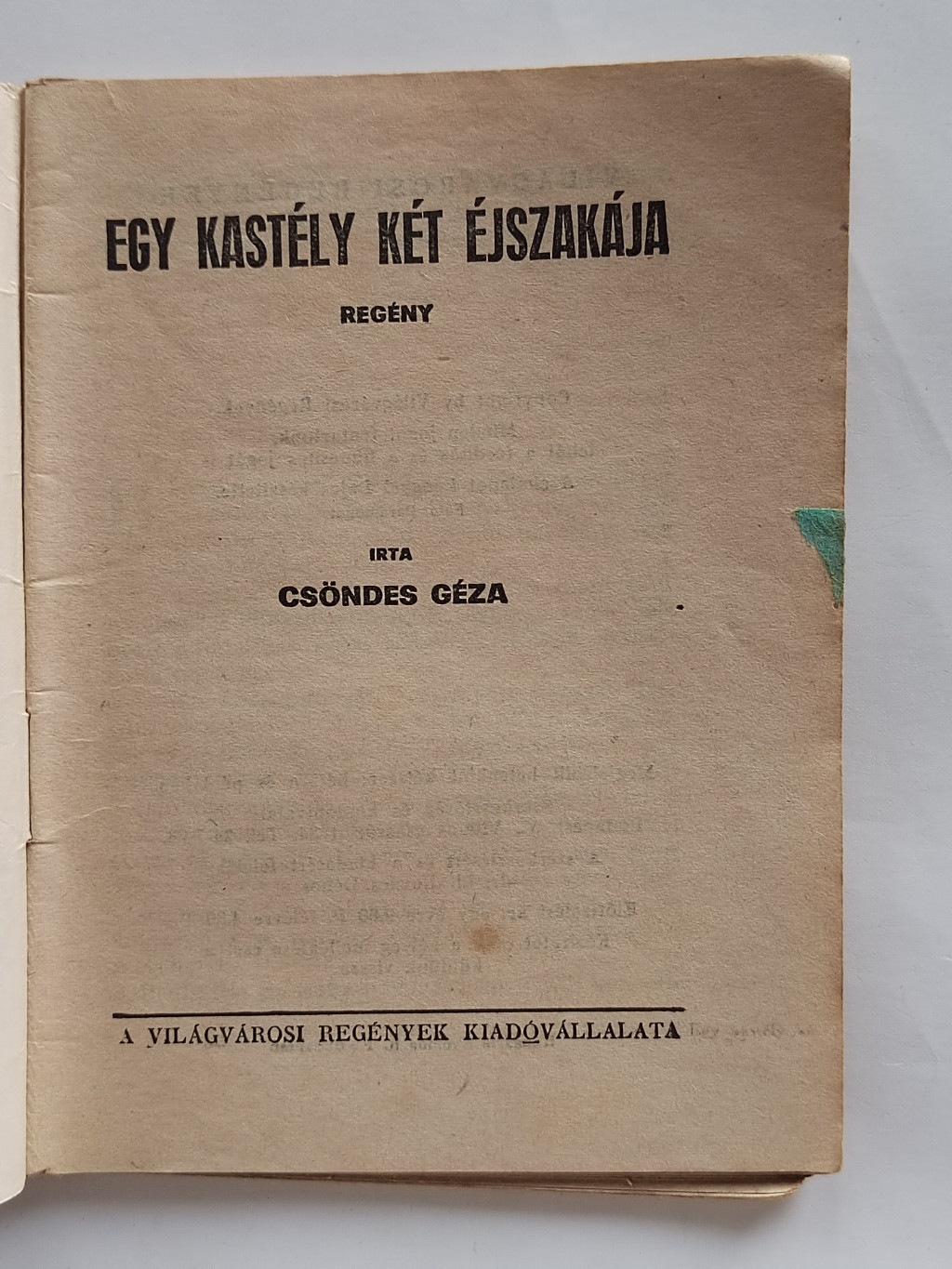 Csöndes Géza: Egy kastély két éjszakája (Világvárosi Regények 159.)