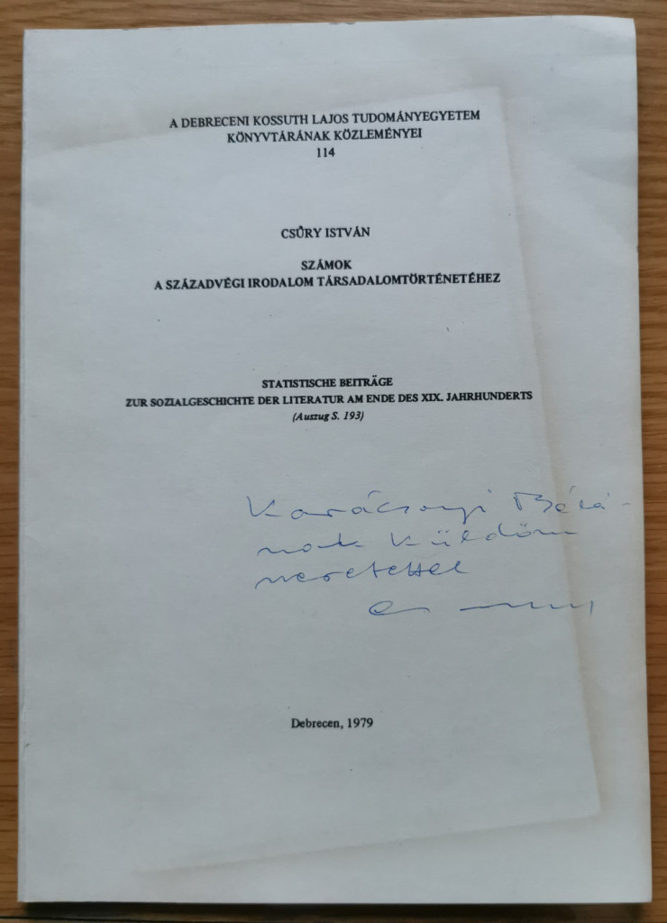 Csűry István: Számok a századvégi irodalom társadalomtörténetéhez (Dedikált!)