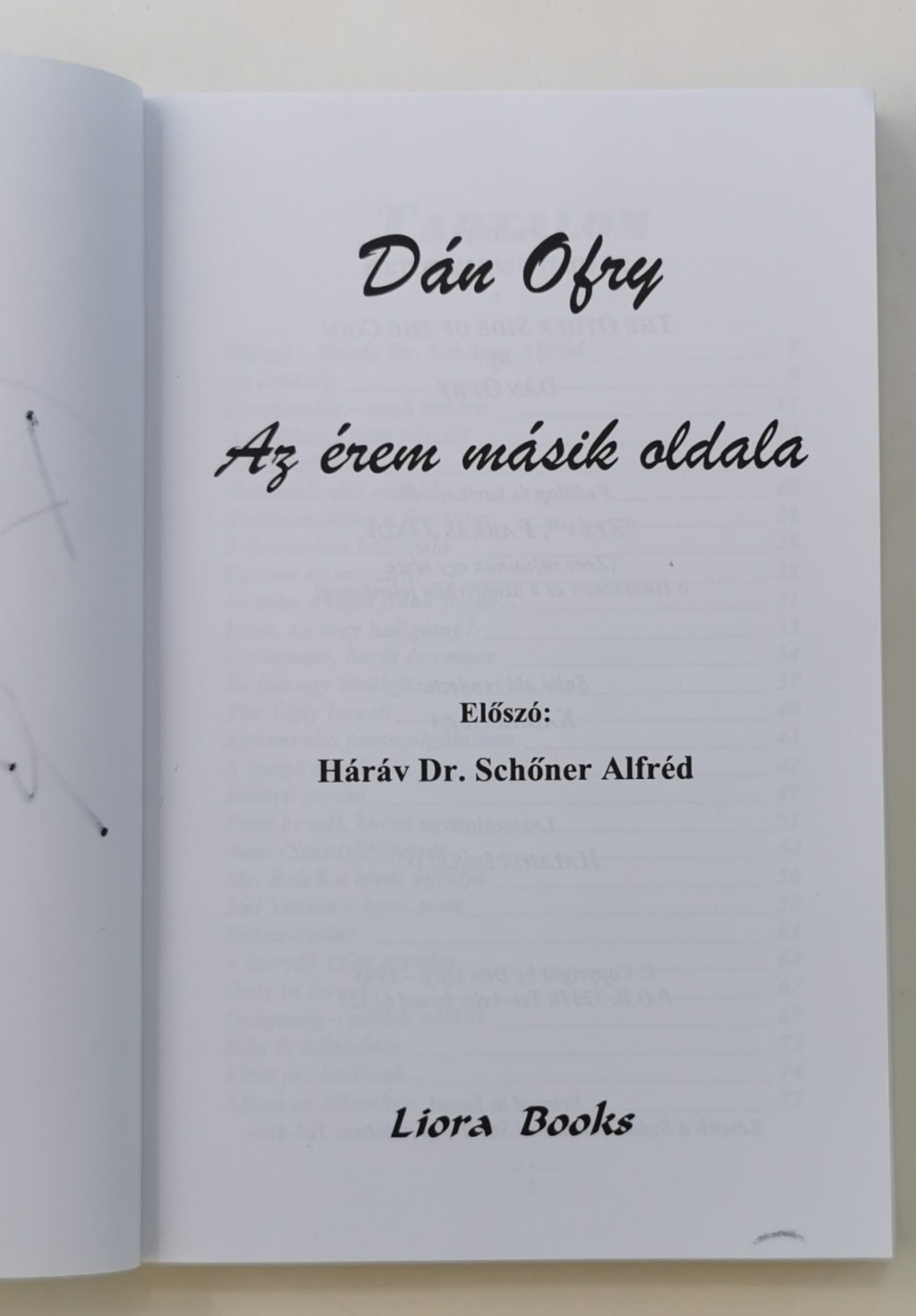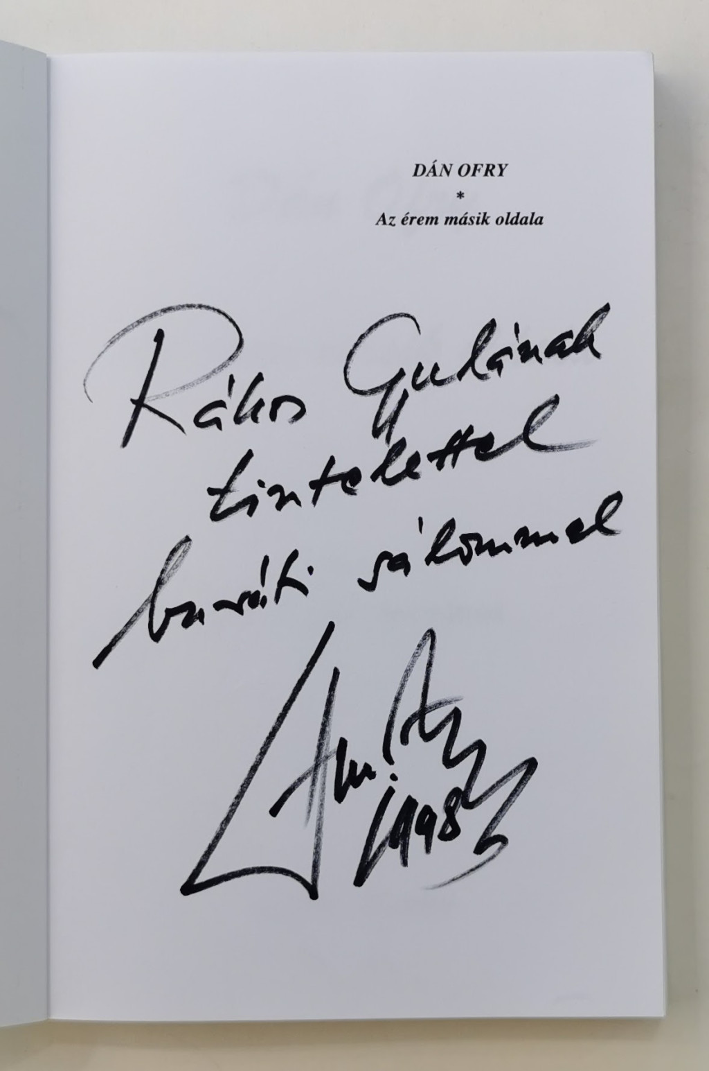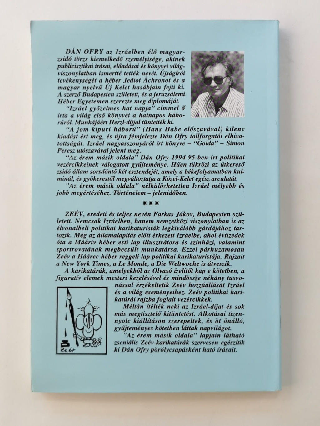 "Az érem másik oldala" Dán Ofry 1994-95-ben írt politikai vezércikkeinek válogatott gyűjteménye. Hűen tükrözi az útkereső zsidó állam sorsdöntő két esztendejét, amely a békefolyamatban kulminál, és gyökerestől megváltoztatja a Közel-Kelet egész arculatát.