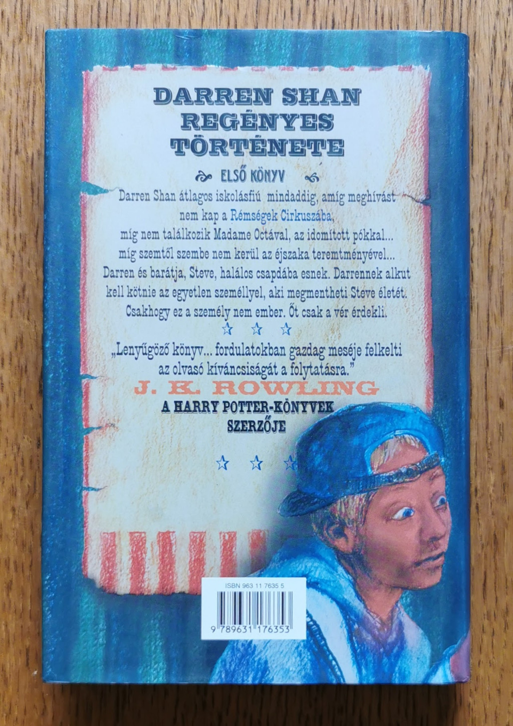 A regénysorozat első kötetében Darren és Steve; a két barát ellátogat a titokzatos cirkuszba, amely az ódon kastély szomszédságában ütötte fel a táborát. A városban persze senki sem értesült a társulatról, és ami a legfontosabb: a szülők és a tanárok sem tudnak róla. Még a szórólapokat is titokban terjesztik a kék csuklyások! Itt ugyanis nem akrobaták és oroszlánok szórakoztatják a közönséget. Nincsenek bohócok, sem idomított elefántok... valóságos rémségek riogatják a nézőt. A legszörnyűbb dolog azonban az előadás után következik. Steve felismeri az egyik szereplőt... látott róla egy rajzot valami régi könyvben, és ebből megtudta, hogy az illető vámpír...