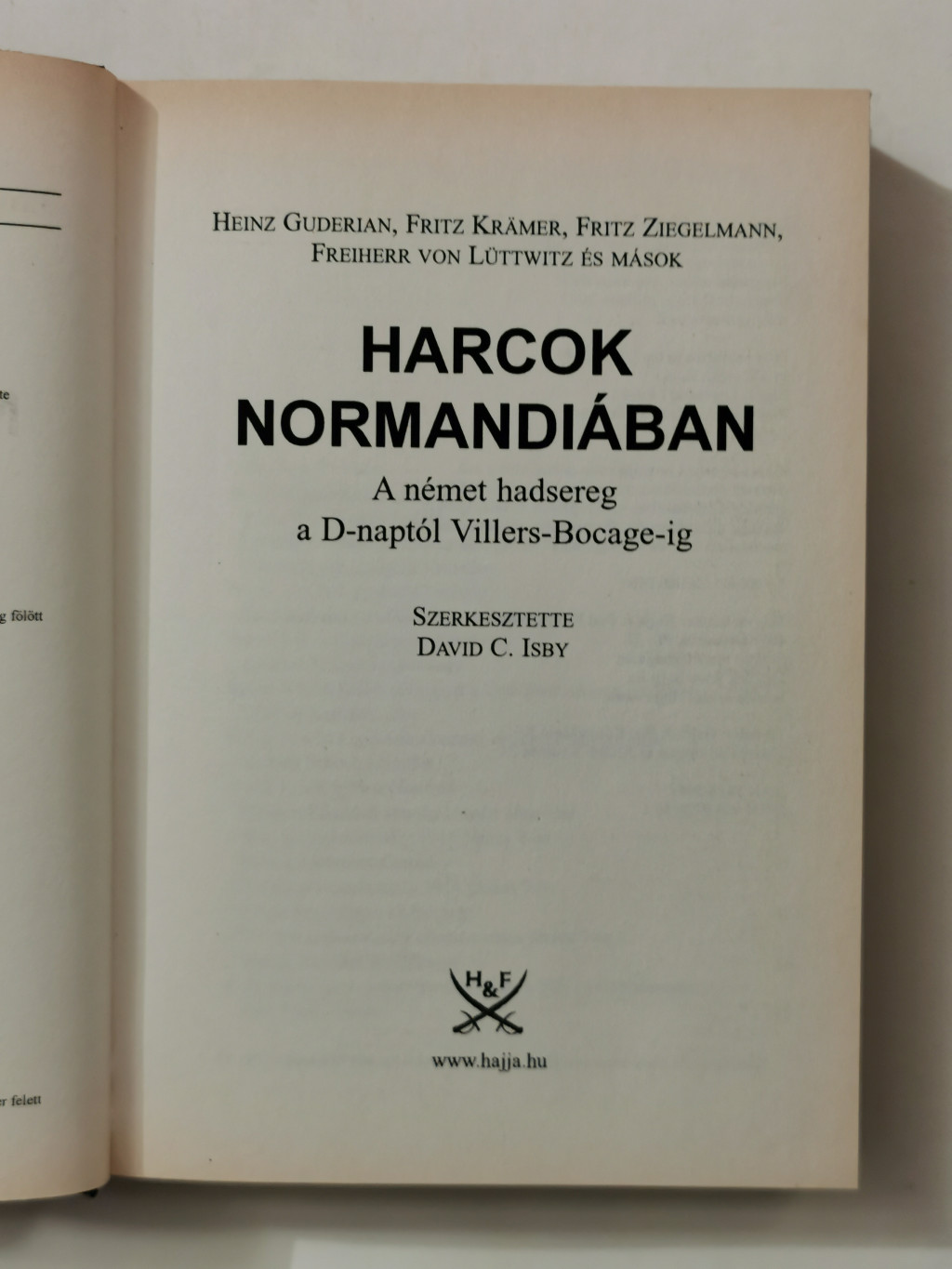 Az ellenséggel küzdő német parancsnokok beszámolói lényegesek abban, hogy az olvasó egészében lássa és objektíven ítélhesse meg a normandiai hadjáratot. David Isby a röviddel a háború befejezése után készült amerikai hírszerzői anyagokból válogatott, melyekből érdekes részleteket olvashatunk a partraszállás visszaverésére irányuló német kísérletekről, a normandiai vidéken zajlott drámai összecsapásokról és az ellentámadások végrehajtására irányuló erőfeszítésekről.
