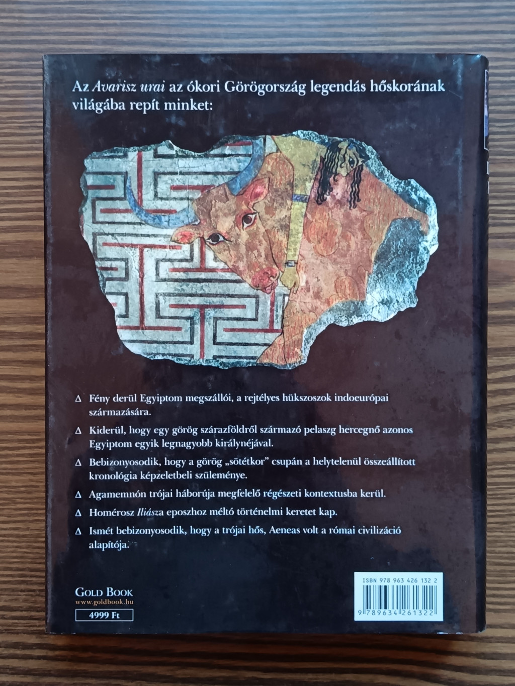 A középső bronzkor kezdetén – kétezer évvel azelőtt, hogy Julius Caesart a római szenátusban meggyilkolták – új nép bukkant fel a történelem színpadán, és csatlakozott Mezopotámia és Egyiptom nagy civilizációihoz. Ezek az indoeurópai nyelvet beszélő harcos törzsek harci kocsikon érkeztek az északi hegyekből és síkságokról. Belőlük lettek később a hettiták, Mitanni árja királyai, és az Indus védikus hősei, a későbbi görög, perzsa és római birodalmak alapítói. Hőseiknek és hősnőiknek se szeri, se száma: Argosz mitikus királya, Inakhosz; lánya, a gyönyörű Ió hercegnő, aki egy egyiptomi fáraó felesége lett; Danaosz, a hükszosz uralkodó, annak a mükénéi dinasztiának az alapítója, ami az Agamemnón baljós csillagzat alatt indított trójai háborúja idején érte el hatalmi csúcspontját; Kadmosz, aki elhozta nyugatra az írás tudományát; a krétai Minósz, Knosszosz felséges királya, a Labirintus építtetője; Mopszosz, a harcos és tudós, aki III. Ramszesz idején hatalmas görög, filiszteus és anatóliai sereg élén Levantéba masírozott és vakmerő kísérletet tett Egyiptom elfoglalására. Róluk és számos társukról ma már legendák szólnak, az Avarisz urai oldalain azonban kiderül, hogy ezek a hősök ősi múltunk hús-vér történelmi alakjai voltak.