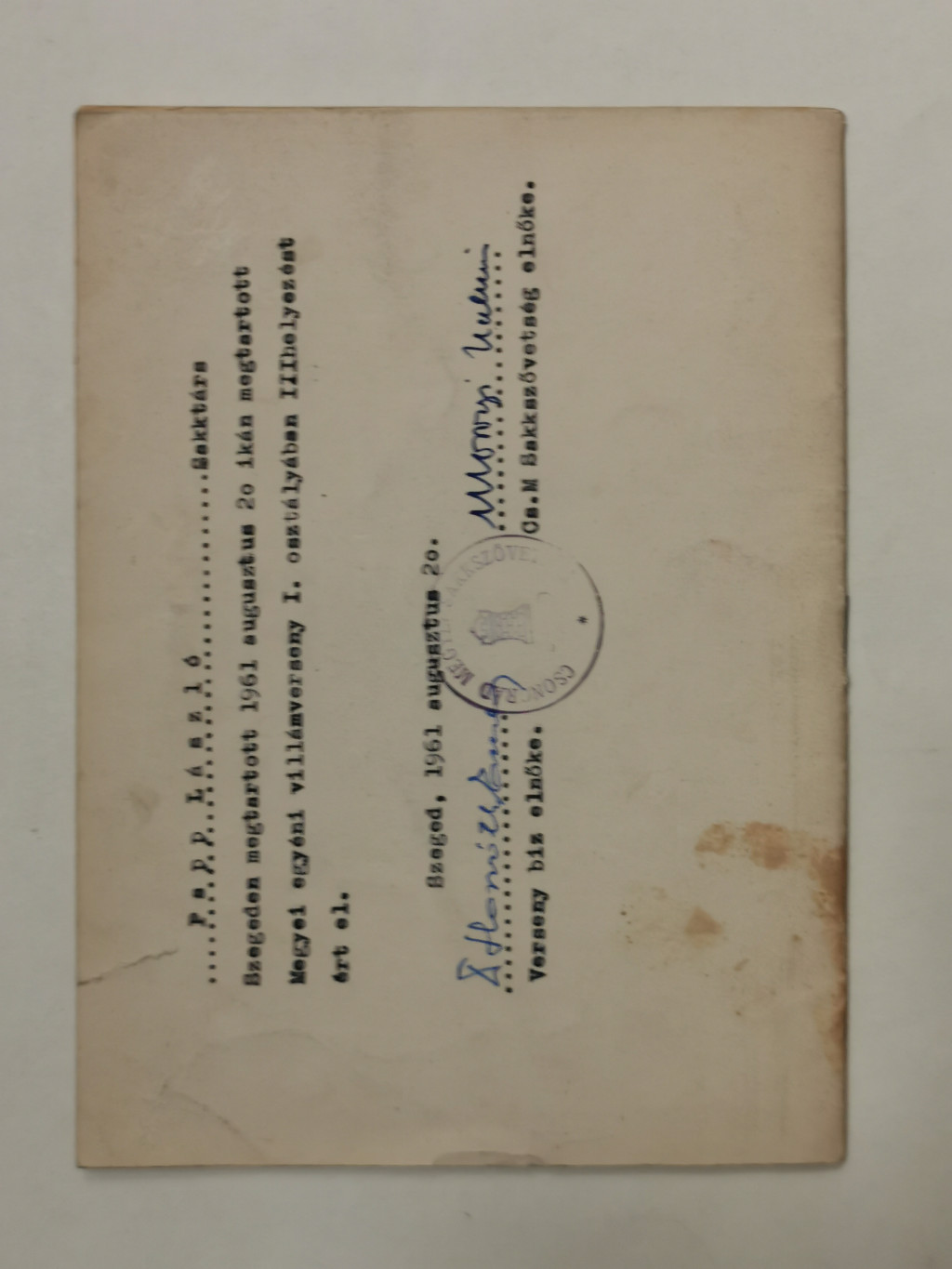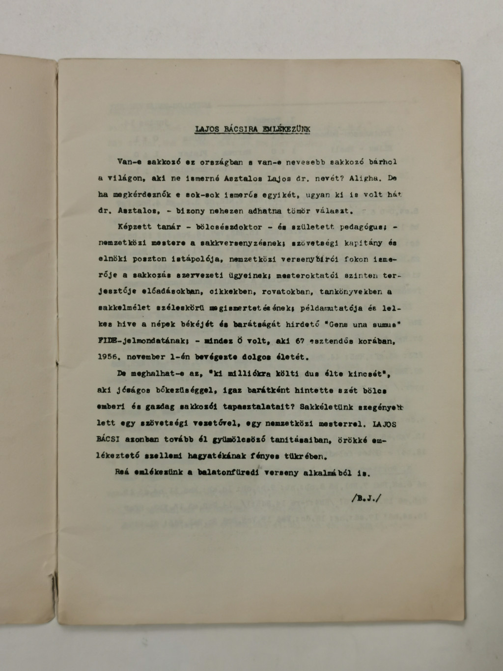 Dr. Asztalos Lajos emlékverseny - Balatonfüred 1958. június 14-28