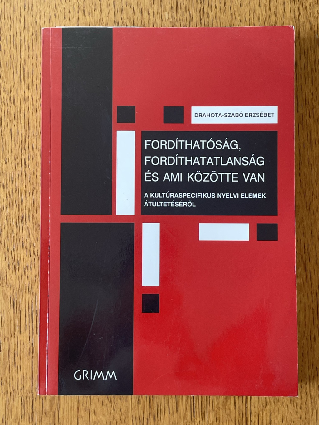 Drahota-Szabó Erzsébet Fordíthatóság, fordíthatatlanság és ami közötte van – A kultúraspecifikus nyelvi elemek átültetéséről című kötete a modern fordítástudomány egyik alapvető magyar nyelvű szakkönyve, amely 2015-ben jelent meg a Grimm Kiadó gondozásában.