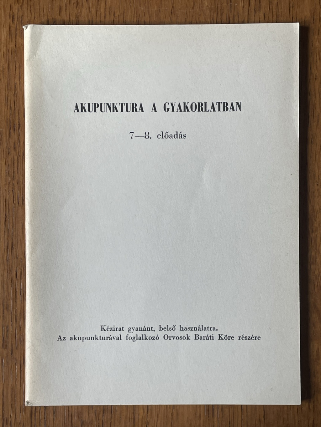 Az akupunkturával foglalkozó Orvosok Baráti Köre részére