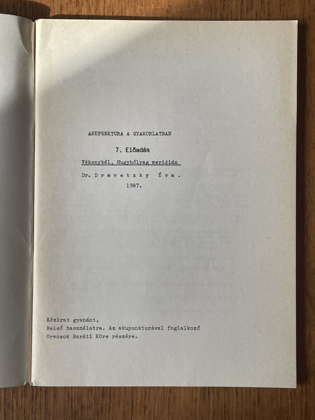 Dravetzky Éva, Dr.: Akupunktura a gyakorlatban 7-8. előadás
